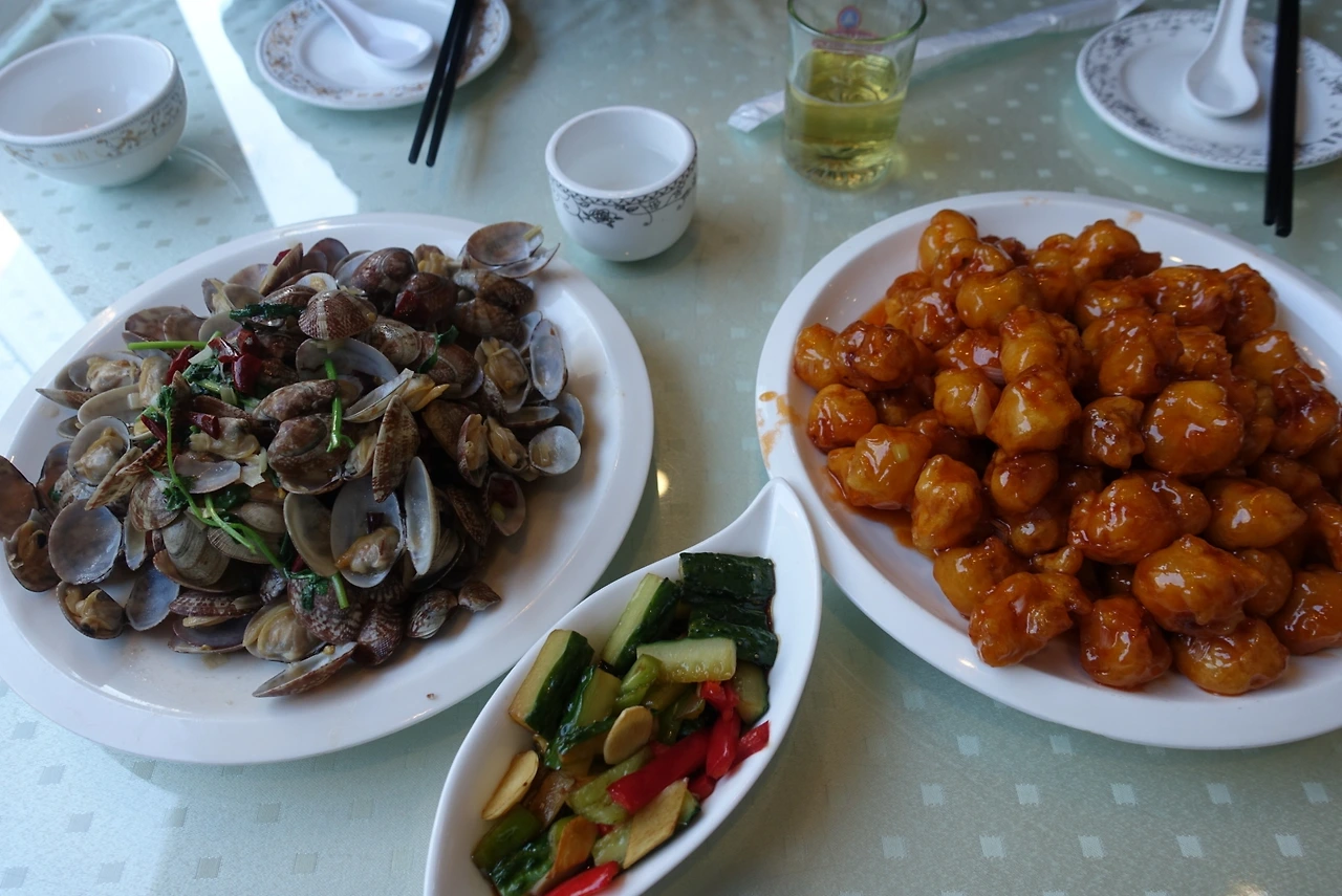 欠拍的黄瓜 (qiànpāidehuángguā) : 오이(黄瓜) 반찬. 칼로 쳐서(拍) 살짝 으깨진 오이에 식초 등으로 무친 것으로, 상큼해서 느끼한 중국 요리에 곁들임으로 먹기 좋다. 연태에서 마라롱샤를 먹을 때도 곁들임 반찬으로, 탕수육을 먹을 때도 시켰었다.