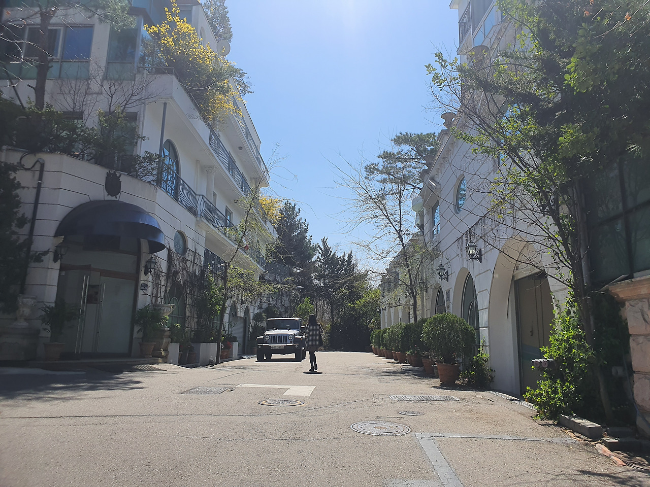 바로 식당에 들어가기에 좀 이른 시간이기도 했고, 배가 좀 더 꺼졌으면 해서 언덕길을 쭉 따라 올라갔어. 오래전에 지은 것 같은, 고풍스러운 빌라가 많더라고. 사람도 없어서 정말 한적했어. 우리는 마음에 쏙 들어서 버티고개에 살고 싶다는 생각마저 했어. 집값도 알아보고, 강아지를 키우는 상상까지 해버렸어.