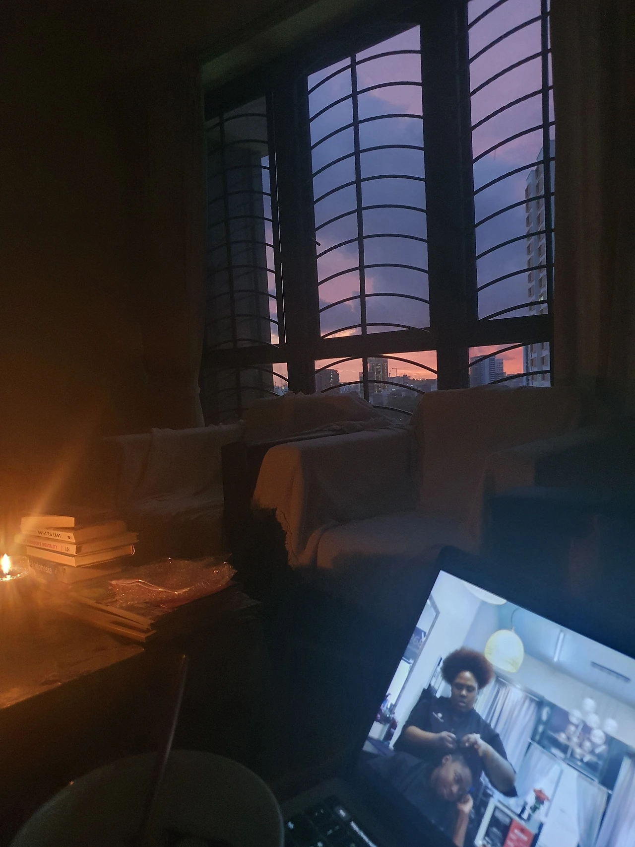 소파에 누워서 하늘 전체가 오렌지빛으로 빛나는 선셋을 보며 금 저녁을 즐기려 했으나 이 마저도 너무 피곤하고 몸이 무겁게 느껴지네.