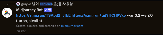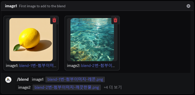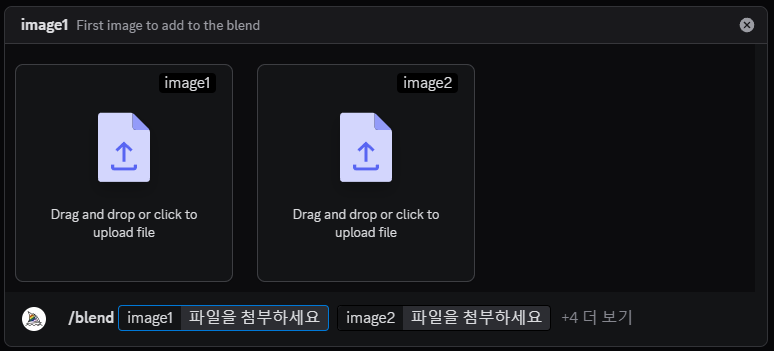 바로 '블렌드(Blend)'라는 기능으로, 두 장의 이미지에서 각각의 특징을 혼합해서 이미지를 만들어내는 방식이다. 직접 프롬프트를 입력하지 않아도, 두 가지의 스타일, 구도, 소재를 하나로 합칠 수 있는 도구인 셈이다.