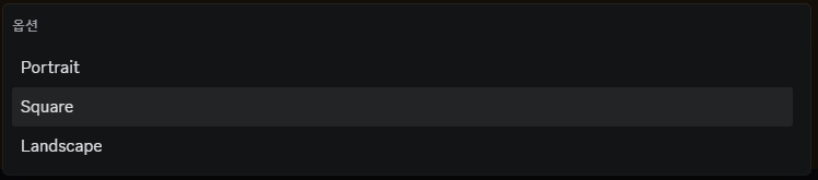 3가지의 비율 중 원하는 항목 선택 (Portrait:세로형/Sqaure:정사각/Landscape:가로형)