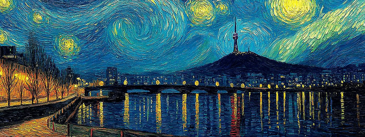 A. 미드저니는 두 이미지의 색감, 형태, 구성 특징을 분석해서 절충된 형태를 만들어낸다. 하나의 이미지가 더 강조될 수도 있고 분명 많은 변수가 존재하지만, 기본적으로는 ‘중간값’을 찾는 방식이다.