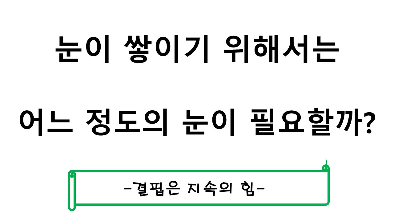 서울에서의 2월 겨울, 눈이 펑펑 쏟아지는 어느 날이었다. 창가에 앉아 멍하니 창밖을 보고 있자니 문득 이런 생각이 들었다. ‘눈이 쌓이려면 어느 정도의 눈이 내려야 할까’. 지면에 닿자마자 사르르 긴급하게 자취를 감추는 이 친구들은 어느 정도 지속되어야 정체를 드러낼까. 시간이 지나 눈이 그친 뒤 일반인들은 바닥에 고인 물만 보고 이것이 비였는지 눈이었는지 알지 못한다. 눈에 당장 보이는 것만 믿기 때문이다. 단순한 논리로 봤을 때, 처음 지면의 온도가 눈의 온도보다 현저히 높기 때문에 눈이 쌓이지 못하고 지면에 흡수당하면서 지면의 온도를 지속적으로 낮추는 것이다. 어느 정도 수준에 이르기까지 같은 과정을 거듭 반복하다 보면 어느새 지면의 온도와 눈의 온도가 동일시되는 순간이 찾아온다. 그때부터 눈은 녹지 않고 지면에 차곡차곡 쌓이게 된다. 기후의 변화로 눈이 그친다던지, 비로 바뀌게 될 경우 우리는 새하얀 눈길을 상상할 수 없게 된다. 일상 속에서 비슷한 예로 임계점 또는 콩나물 물 주기 등의 표현을 많이 쓴다. 이렇듯 우리가 가시적인 결과물을 얻기 위해서는 반드시 ‘지속의 힘’이 필요하다. 지속되지 않는 힘, 결과 없는 노력은 일반인들에게 아무런 관심도 끌 수 없다. 대부분의 사람들은 과정은 간과한 채 결과만으로 판단하려는 경향이 매우 강하기 때문이다. 결과는 우리 눈에 가시적으로 드러나기 때문에 바로 알아차릴 수 있지만, 과정은 관심을 가지고 세심히 보지 않으면 알기 어렵다. 우리 모두는 쌓이지 않은 눈, 끓지 않는 물, 자라지 않는 콩나물에는 별 관심이 없다. 눈도 쌓여야 그 위에서 썰매를 타든 스키를 타든 할 수 있고, 물도 끓어야 라면이든 국도 끓일 수 있다. 이러한 결과 없이 애매한 상태에서는 사람들의 환영을 받지 못한다. 우리는 이 사실을 이미 너무도 잘 알고 있음에도 불구하고 ‘눈은 쌓일 수 없어’,‘물은 끓을 수 없어’,‘콩나물은 더 이상 자라지 않아’라고 스스로에게 합리화한다. 그러고는 그 과정만을 누군가가 알아주길 바랄 뿐이다. 그러한 사람들의 공통점은 항상 과거형으로 이야기한다는 것이다. ‘눈이 쌓이지 않았어’ , ‘끓을 뻔했는데 끓지 않았어’ , ‘자라지 않는 불량 콩나물이었다고!’ 등의 식으로 말이다.