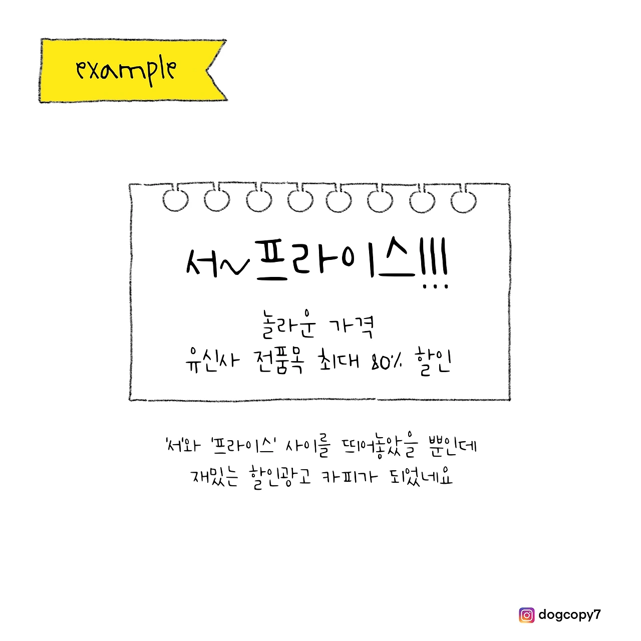 재밌지 않나요? 띄어쓰기만 달라졌는데 전혀 다른 의미, 느낌의 문장이 되었습니다. 카피에서도 이처럼 띄어쓰기를 활용할 수 있습니다.