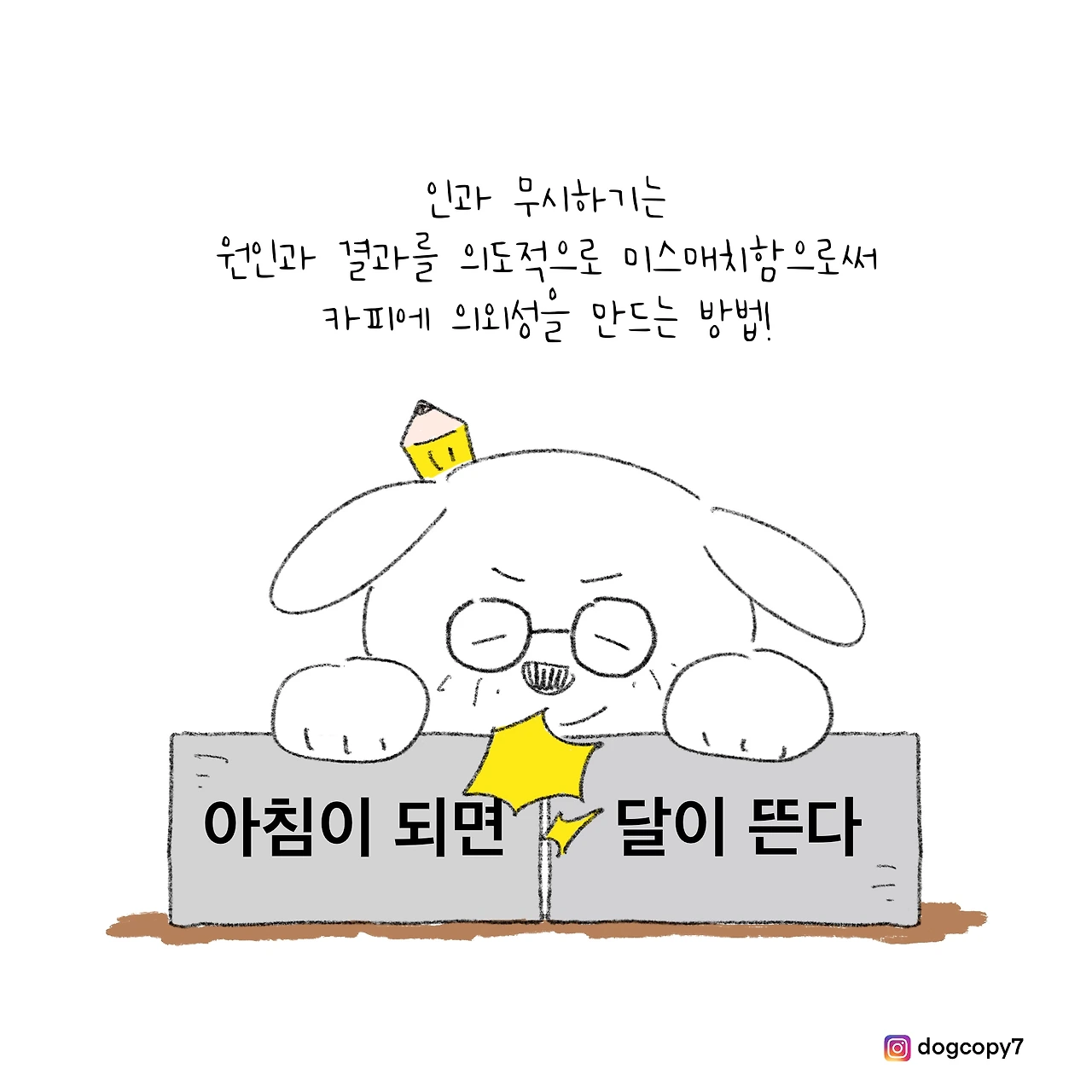'인과 무시하기'는 '속성 무시하기'처럼 카피에 의외성을 만드는 또 하나의 방법입니다. 다만 이번에 무시하는 대상은 속성이 아닌 인과관계! 예를 들면 '아침이 되면 달이 뜬다', '밥을 먹으면 배가 고프다', '사랑에 빠지면 외롭다' 등등