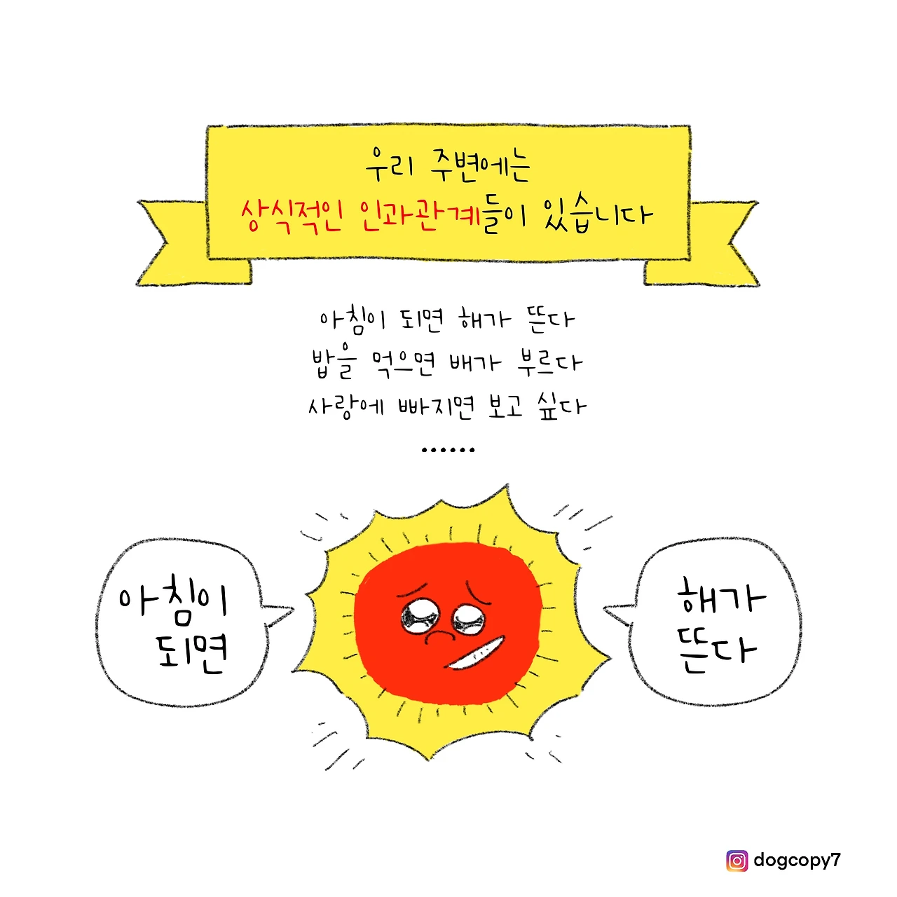 '아침이 되면 해가 뜬다', '밥을 먹으면 배가 부르다', '사랑에 빠지면 보고 싶다'...