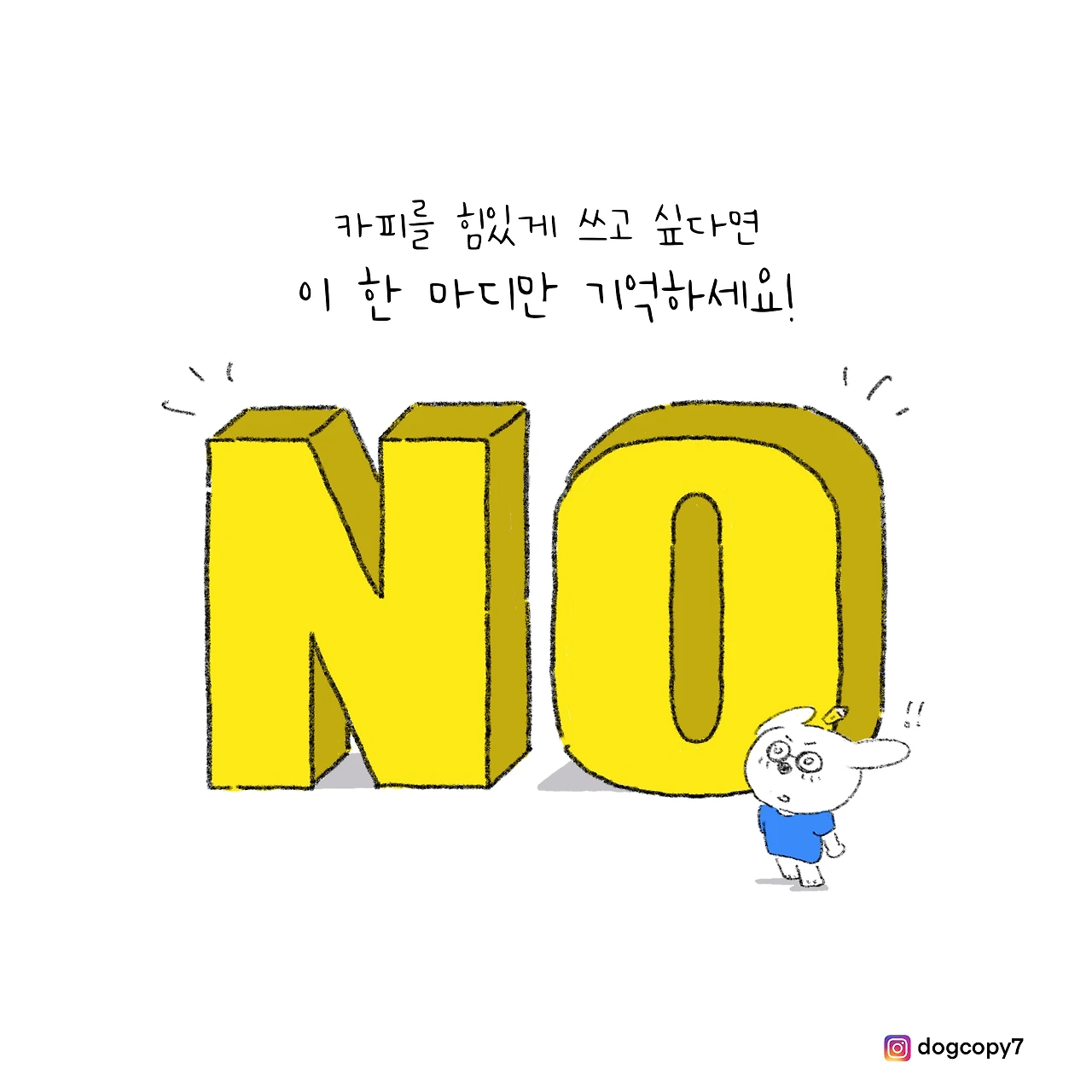 무슨 이유로, 도대체 무슨 자신감이길래 'No'라고 외치는 걸까. 그 속이 괜히 궁금해집니다. 'No'라는 단어가 가진 힘은 바로 거기에 있습니다.