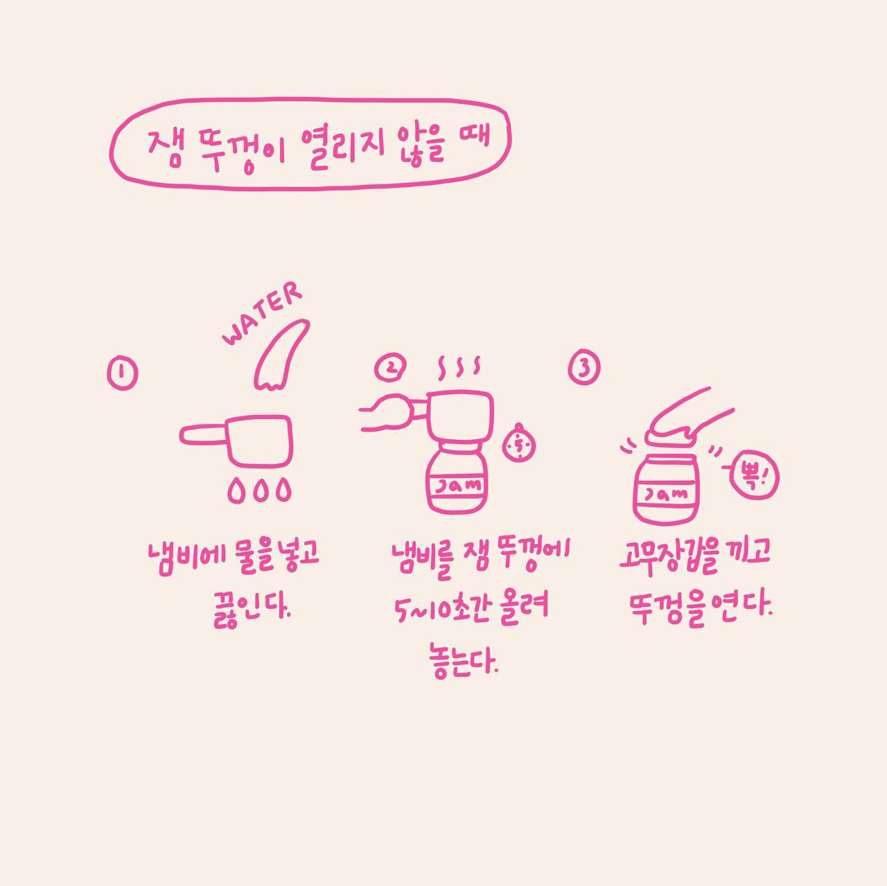 방금 전에 사 온 라즈베리 잼 뚜껑을 따려고 하는데 온갖 힘을 줘봐도 굳게 닫힌 뚜껑은 열릴 생각을 하지 않았다. 고무장갑을 끼고 돌려봐도 승모근이 파열되는 느낌이 날 정도로 온몸으로 감싸서 돌려봐도 열리지 않았다. 잼 뚜껑을 열려고 했던 손은 뚜껑을 쥔 곳이 파랗게 멍이 들었다.