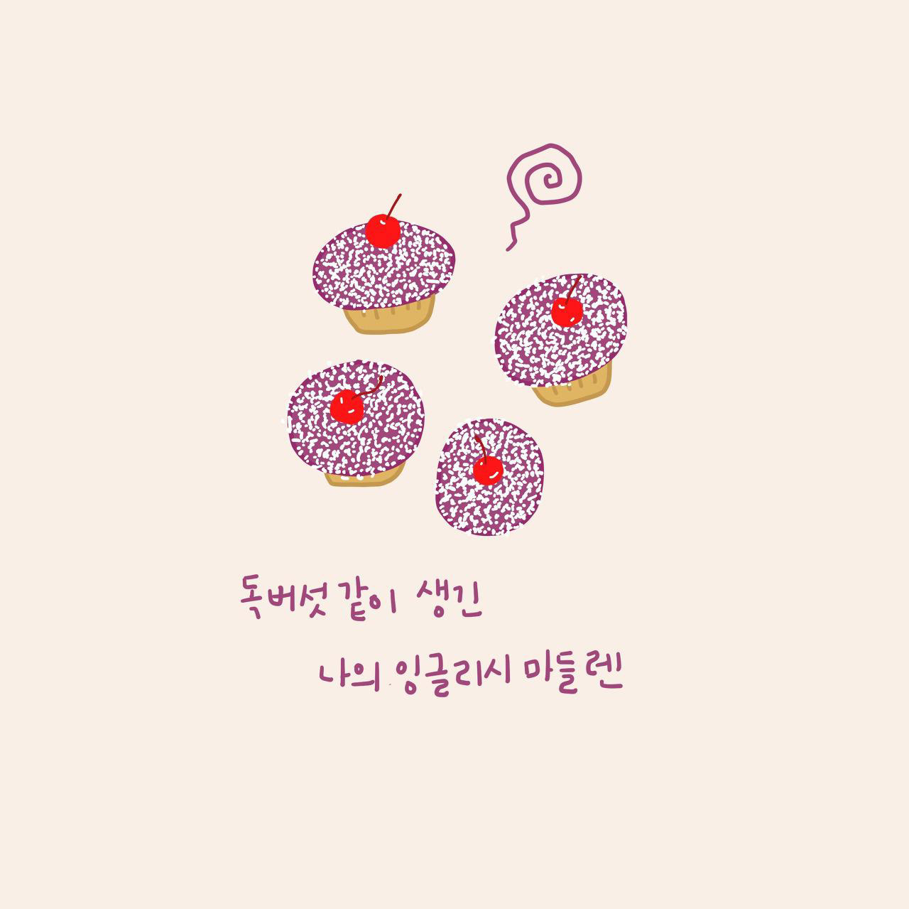 7살 꼬마가 만든 듯한 (꼬마가 더 잘 만들었을지도) 잉글리시 마들렌의 맛은 생각보다 라즈베리 잼과 코코넛의 합이 독특했다. 둘 다 낯선 재료라서 그런지도 모르겠다. 새콤하면서도 뒤끝 맛이 고소하고 달달했다. 아마 잼만 발랐더라면 너무 달아서 많이 못 먹었을 것 같은데 코코넛이 중화를 시켜주는 듯했다. 생각보다 맛있었는데 모양이 너무 이상했는지 집에 돌아온 언니도 아빠도 눈길을 안 주시길래 아주 친절하게 접시에 하나씩 담아서 눈 앞에 가져다 드렸다. 원뿔대 모양의 틀이 있었으면 더 예뻤을 텐데! 라며 빵 틀 탓을 해보았다.