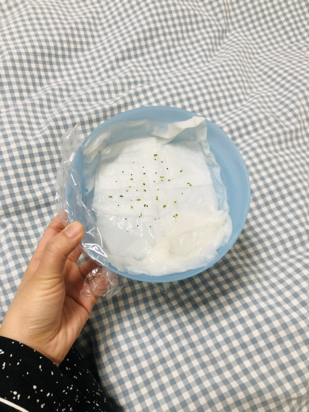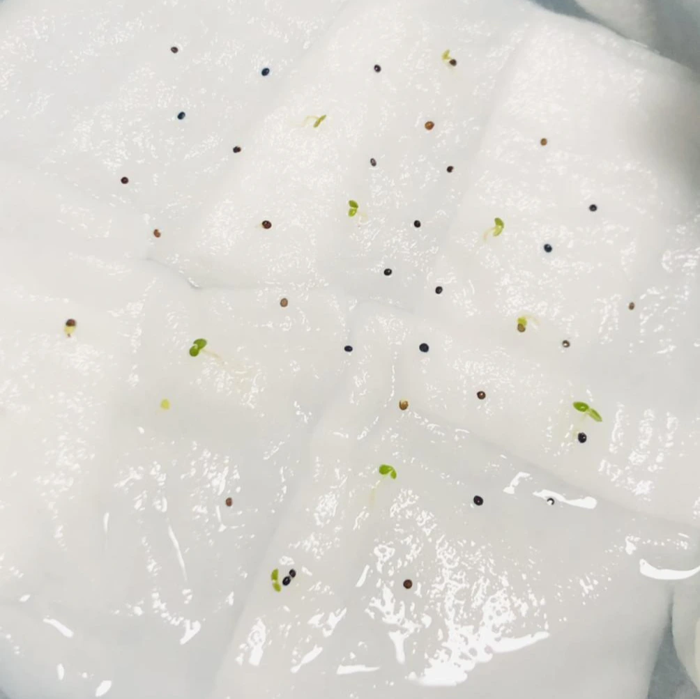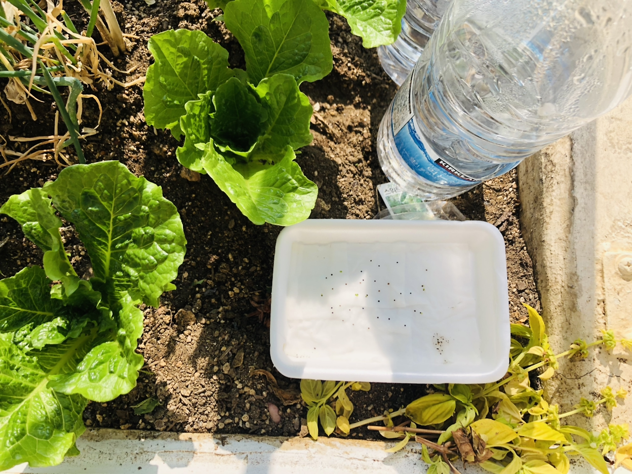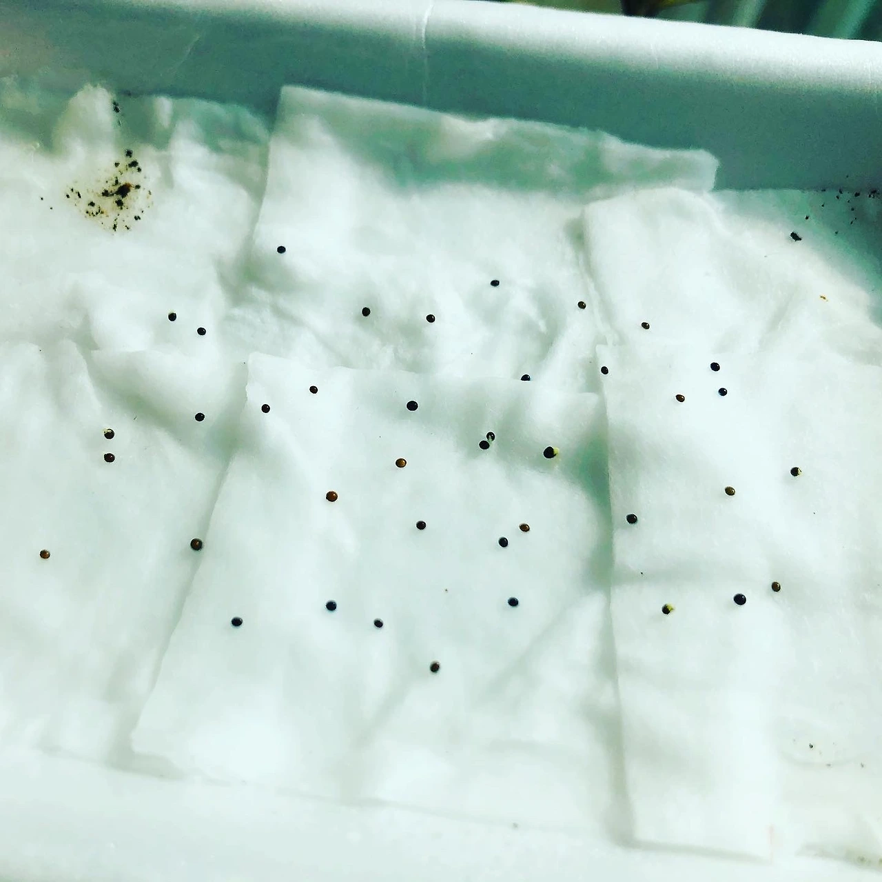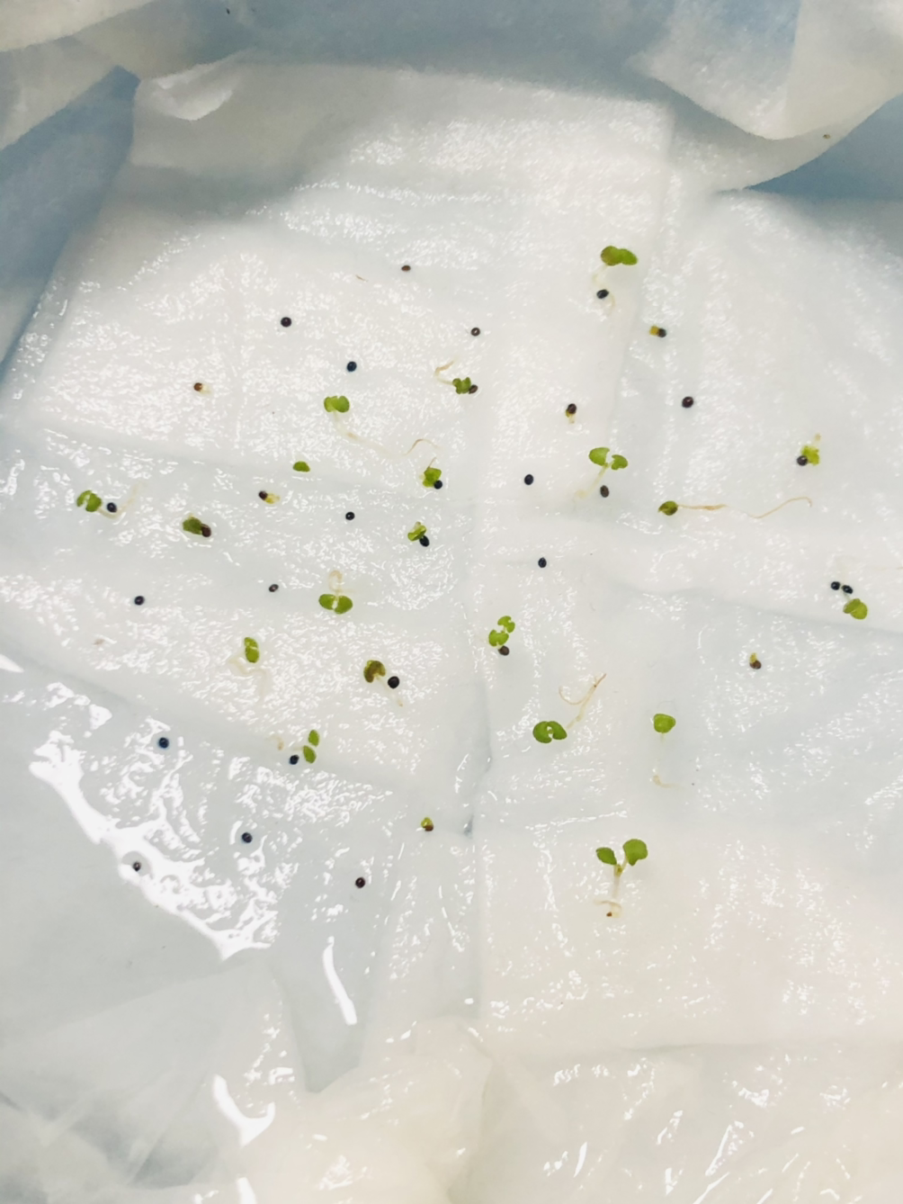 신나서 택배를 뜯고 나서 씨앗을 딱 보았는데 기쁨도 잠시 생각해보니 어디에 심을지 생각도 안 해보고 무작정 구매했다는 생각이 들었다. 판매 사이트를 보니 작은 모종 포트나 지피 펠렛이라는 씨앗 파종용 흙에다가 한다고 하던데 알았으면 함께 주문할 텐데 씨앗만 사는 데 꽂혀서 이후 생각을 하지 않았다. 너무 막막해서 엄마께 SOS 신청을 했더니 날이 추운데 무슨 씨앗을 샀냐며 엄마께 한 번 혼난 후 베란다 화단에다가 한 줄, 혹시 모르니 따뜻한 실내에서 조그맣게 솜 발아도 함께 해보기로 했다. (허브 타임은 내한성이 좋아서 겨울에 베란다 재배도 가능하다고 한다.) 솜 발아는 처음 해보는 거라 인터넷에서 블로그 사진만 보고 비슷하게 따라 했는데 마음 한 편으로는 싹을 틔우는 게 힘들지 않을까 하는 생각도 조금 갖고 있었다. 그냥 자라 있는 화분을 살걸 또 오버했다며 마음만 앞선 나를 탓하며 눈에 보이는 스티로폼에 화장솜을 물에 적셔 깔고 깨알보다 작은 씨앗들을 2~30개 정도 뿌려주고 그 위에 또다시 분무기로 물을 뿌려 주었다.