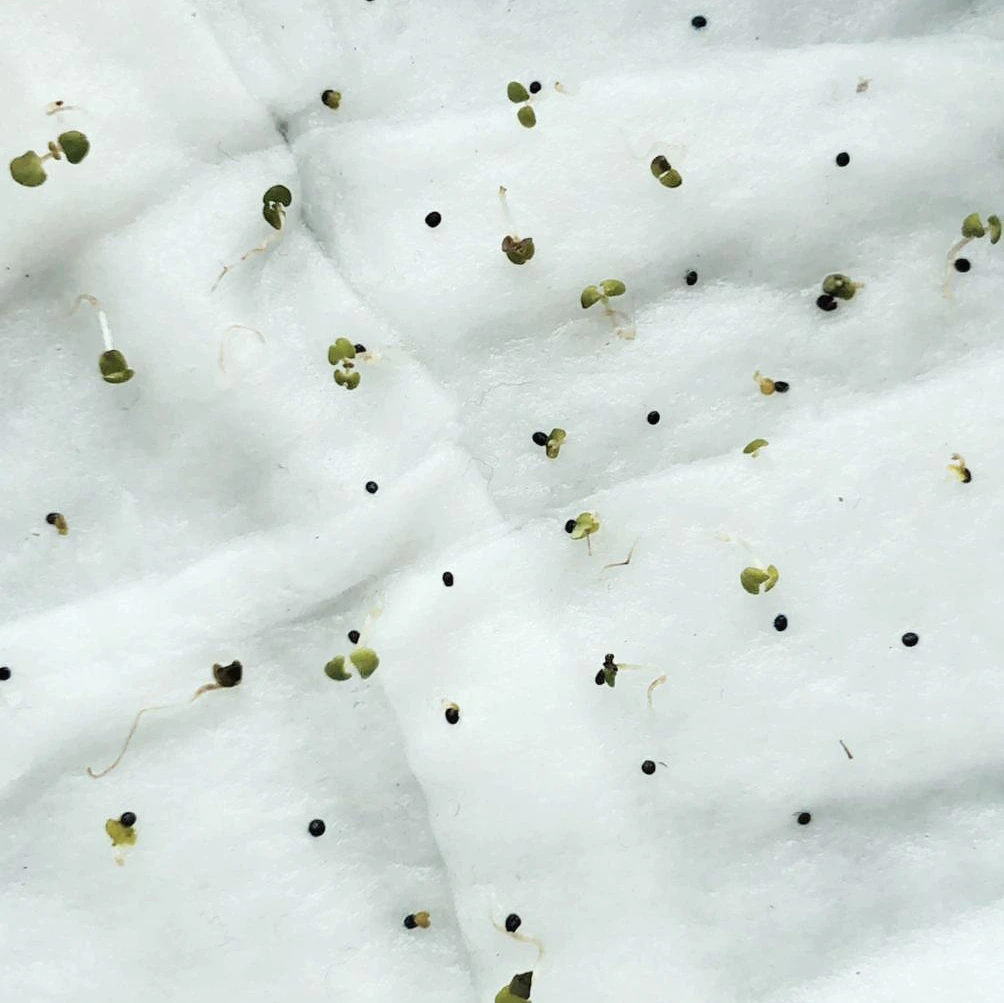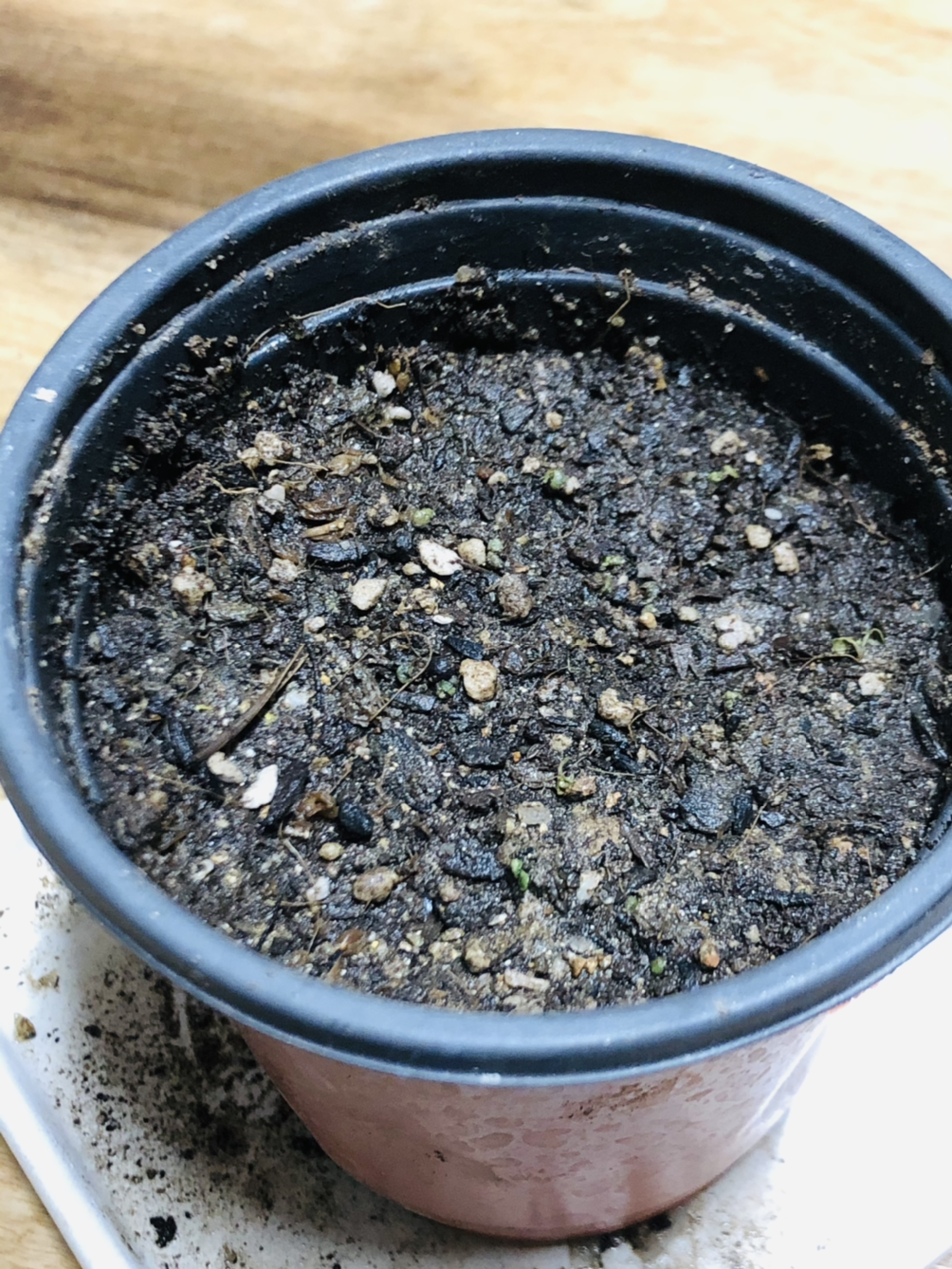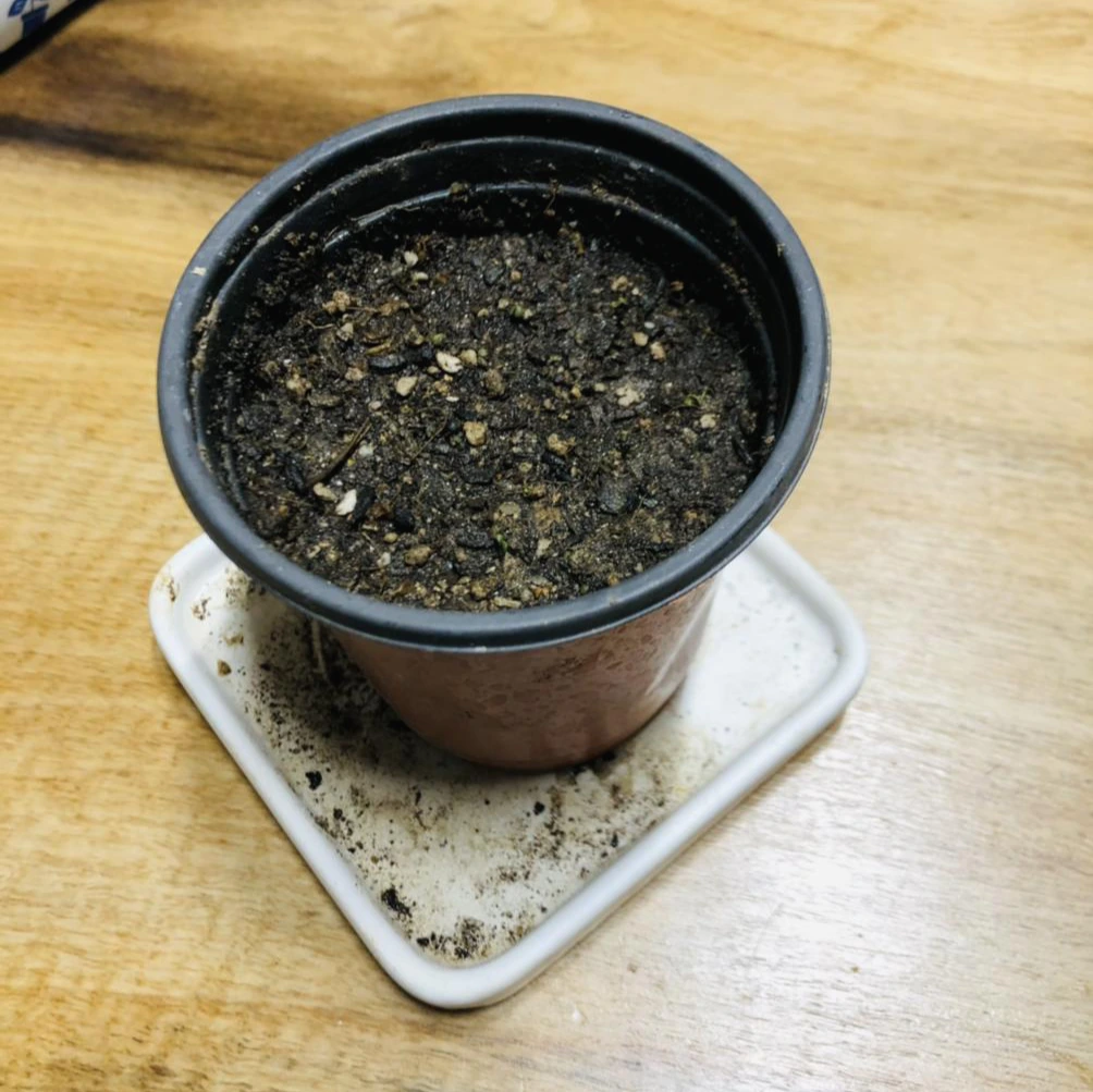판매 사이트에서는 3~4주 이내에 발아한다고 해서 일주일간은 그냥 물만 마르지 않게 해야겠다고 다짐했는데 무려 4일 차 아침에 검은색 씨앗 사이로 노란색의 무언가가 보였다. 씨앗이 너무 작아서 잘 보이지가 않아 처음엔 긴가민가 했다가 아주 자세히 들여다보니 발아가 된 게 맞았다. 심지어 그날 밤에 본 씨앗은 그새 더 자라 있었다. (생명의 신비)
