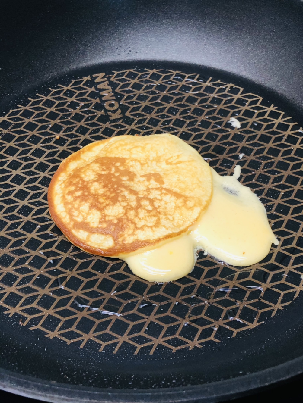 이렇게 간단한 레시피가 메인화면에 떠있다니! 유튜브 알고리즘도 내가 쉬운 레시피를 찾아다니는 걸 학습한 걸까. 지난번 단팥빵을 위해 사둔 팥앙금이 호두과자를 만들고도 가득 남아있어서 걱정했는데 잘됐다 싶어 도라야키를 당장 만들어보기로 했다. 반죽은 달걀에 설탕, 바닐라 익스트랙, 꿀을 넣고 섞은 다음 박력분과 베이킹파우더 그리고 베이킹소다를 체 쳐서 넣고 섞어준 다음 마지막으로 우유를 넣고 섞어주면 끝이었다. 이대로 15분간 실온에서 숙성을 시키고 난 뒤 프라이팬을 준비했다. 기름을 바른 뒤 걸쭉한 반죽을 한 국자 떠서 가운데에 천천히 떨어뜨렸더니 점성이 있어서 그런지 많이 퍼지지 않고 가운데에 동그랗게 모양이 예쁘게 잡혔다. 양이 너무 적은 건 아닌가 싶어서 한 국자를 더 떠서 넣었다. 그리고 기포가 올라오길 기다린 뒤 2분 후에 뒤집으면 된다고 레시피 영상에 적혀있었다. 초시계까지 보면서 인스타그램에 올릴 영상을 찍을 준비를 했다. 레시피 영상에서 보면 뒤집개로 딱 뒤집으면 정말 예쁜 갈색빛의 맨질한 면이 나와서 이 장면을 찍어보고 싶었다.