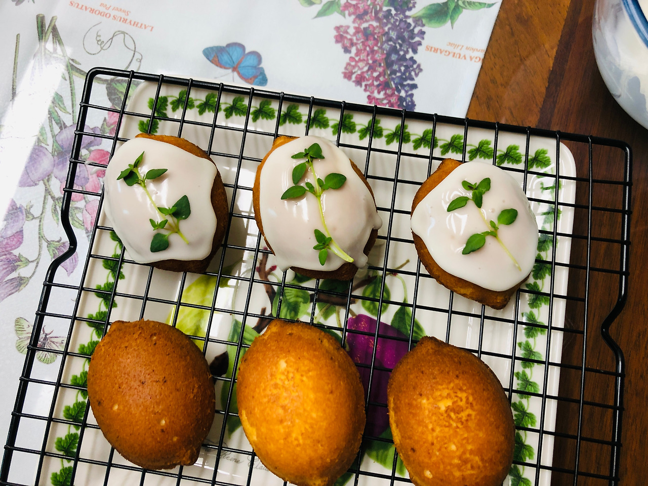 #6. 레몬 위크엔드 케이크는 생각보다 잘 나와주진 않았다. 구움색은 너무 많이 났고 부풀지도 않았지만 불투명하게 꾸덕한 레몬 아이싱을 위에다가 뿌려주었더니 그럴싸해 보였다. 그리고선 손가락 한 마디 정도로 자른 허브 타임을 장식으로 올려주었다. 드디어 길고 긴 염원의 시간이 찾아왔다. 작년부터 이 날을 위하여 씨앗을 심고 싹을 틔웠구나! 허브 향이 생각보다 강해서 살짝 걱정했었는데 그보다 레몬 향이 더욱 강해서 적절하게 조화가 잘 되었다.