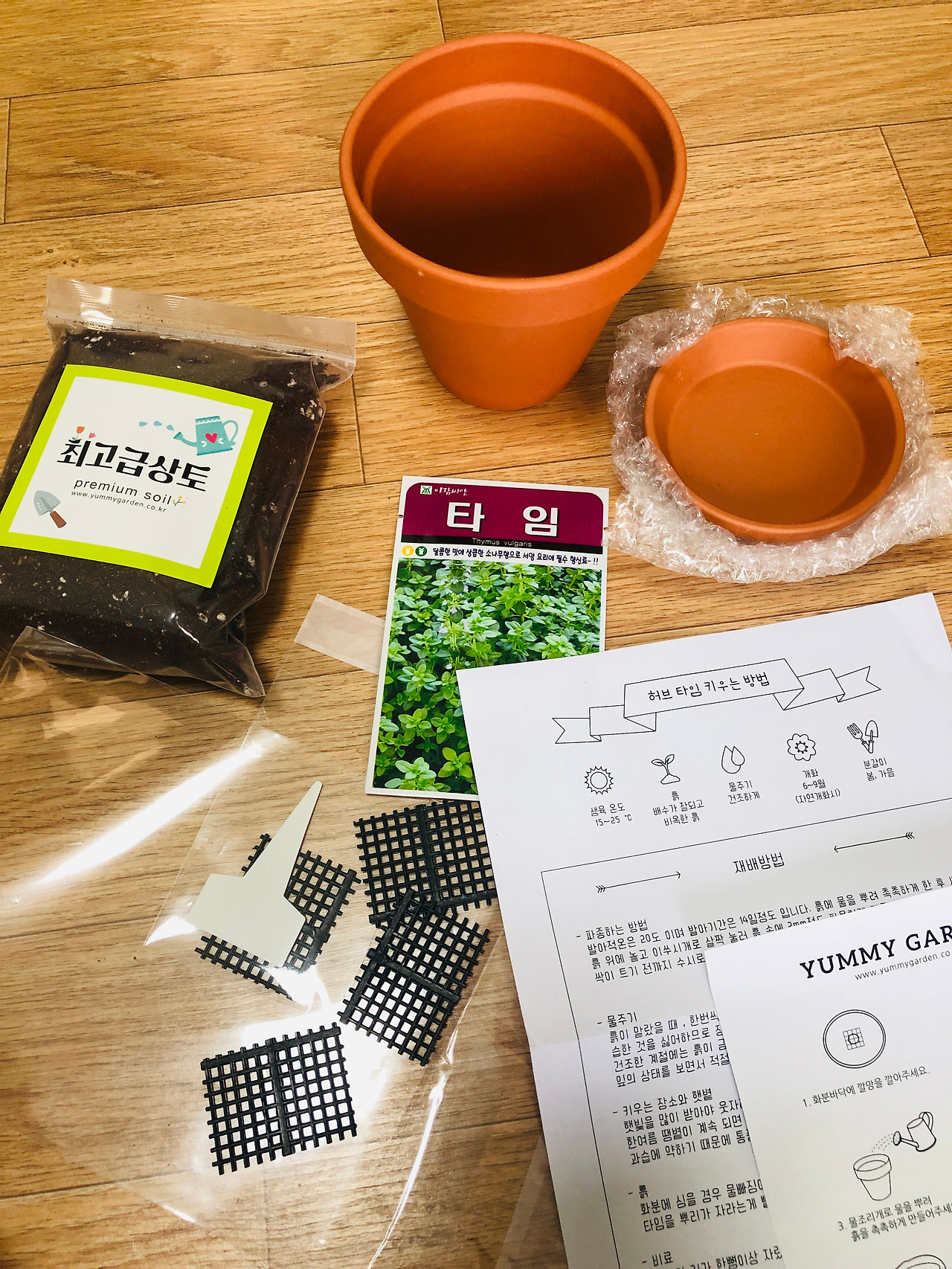 그냥 한 번 길러서 베이킹을 하고 싶었을 뿐이다. 단지 그뿐이었다. 사실 세상 사람 그 누구도 왜 하냐고 묻지 않았는데 스스로에게 하는 질문이었다. 그거 뭔 이득이 있다고 하니? 하지만 나는 옛날부터 참 쓸데없는 일을 좋아하던 사람이었다. 산더미같이 쌓인 언제가 버릴 색종이도, 오색빛깔의 십자수 실도 그냥 그걸 보고 있는 자체만으로도 기분이 좋았다. 그래서 씨앗을 구매하기로 했다. 만반의 준비로 흙과 화분, 거름망 그리고 키우는 설명서까지 들어간 키트로 준비했다. (이런 게 있는 줄 알았으면 진작에 이걸로 살걸 그랬다.)