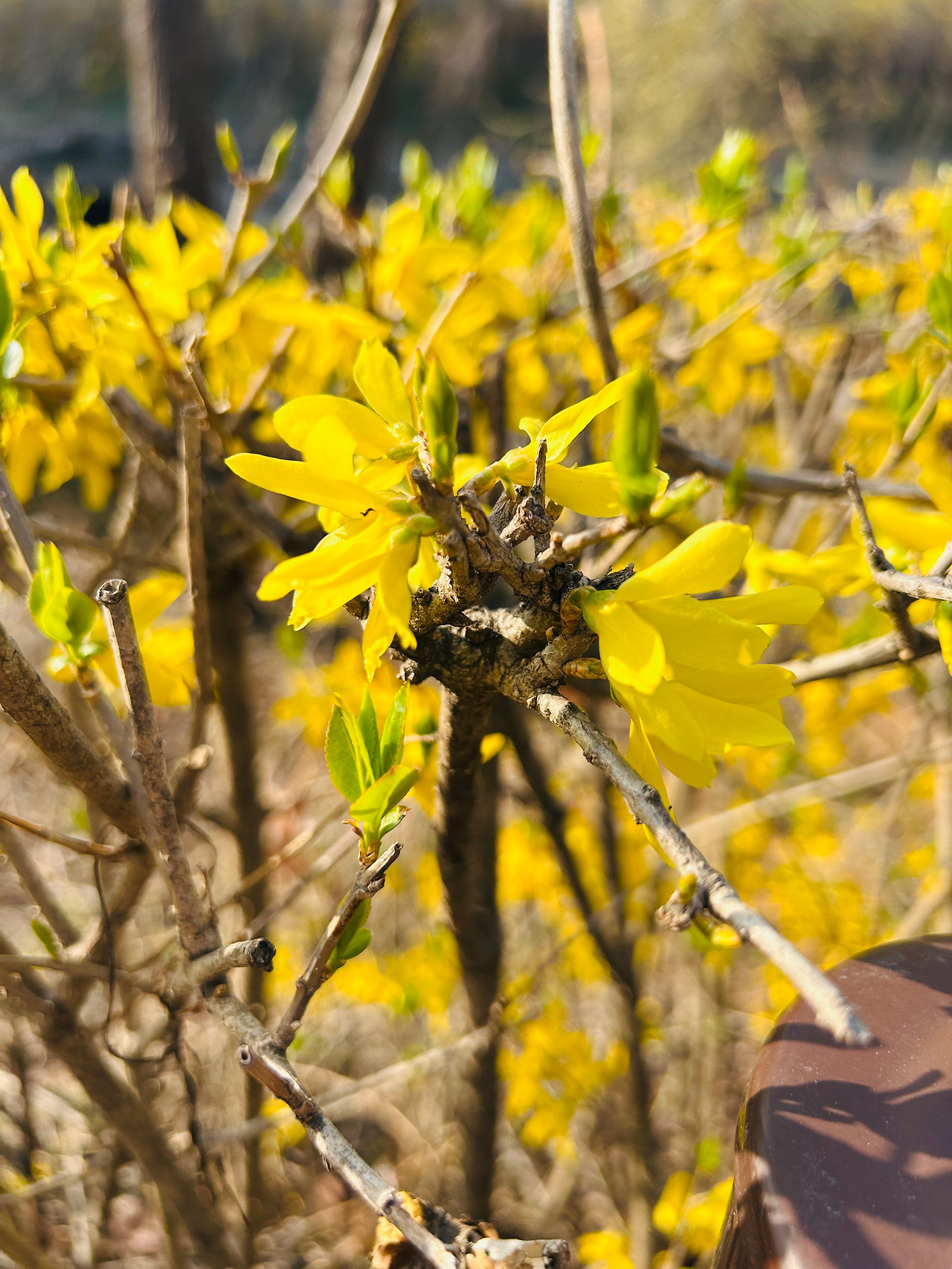 일주일 후, 개나리가 만개한 산책로를 따라 걷는데 사뭇 다른 느낌이 들었다. 공평하게(?) 개나리에게도 꽃말이 적용되어 그런지 앙증맞고 귀여운 꽃이 희망을 가득 품고 있는 것 같아 보였다. 서양에서는 개나리를 황금종(golden bell) 이라고 부른다던데 ”달성“이라는 꽃말과도 잘 어울린다는 느낌이 들었다.