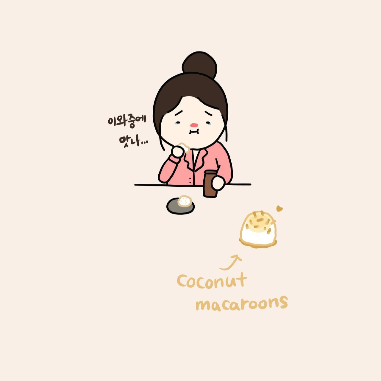 커피와 베이글을 파는 작은 카페였는데 매일 아침 나는 이곳에서 베지터블 크림치즈 베이글과 커피를 사서 아침 식사로 먹곤 했다. 팀장님은 커피를 하나 주문하시면서 유리병 안에 들어있는 처음 보는 흰색의 동그란 과자 두 개도 함께 주문하셨다. 좀 진정이 되고 이런저런 이야기를 들으며 하얀 과자를 한 입 먹는데 코코넛이 씹히면서 아주 달달한 맛이 나는 바람에 울었던 기억은 이미 저 멀리 달아나고 정체모를 하얀색 과자에 관심이 쏠렸다.