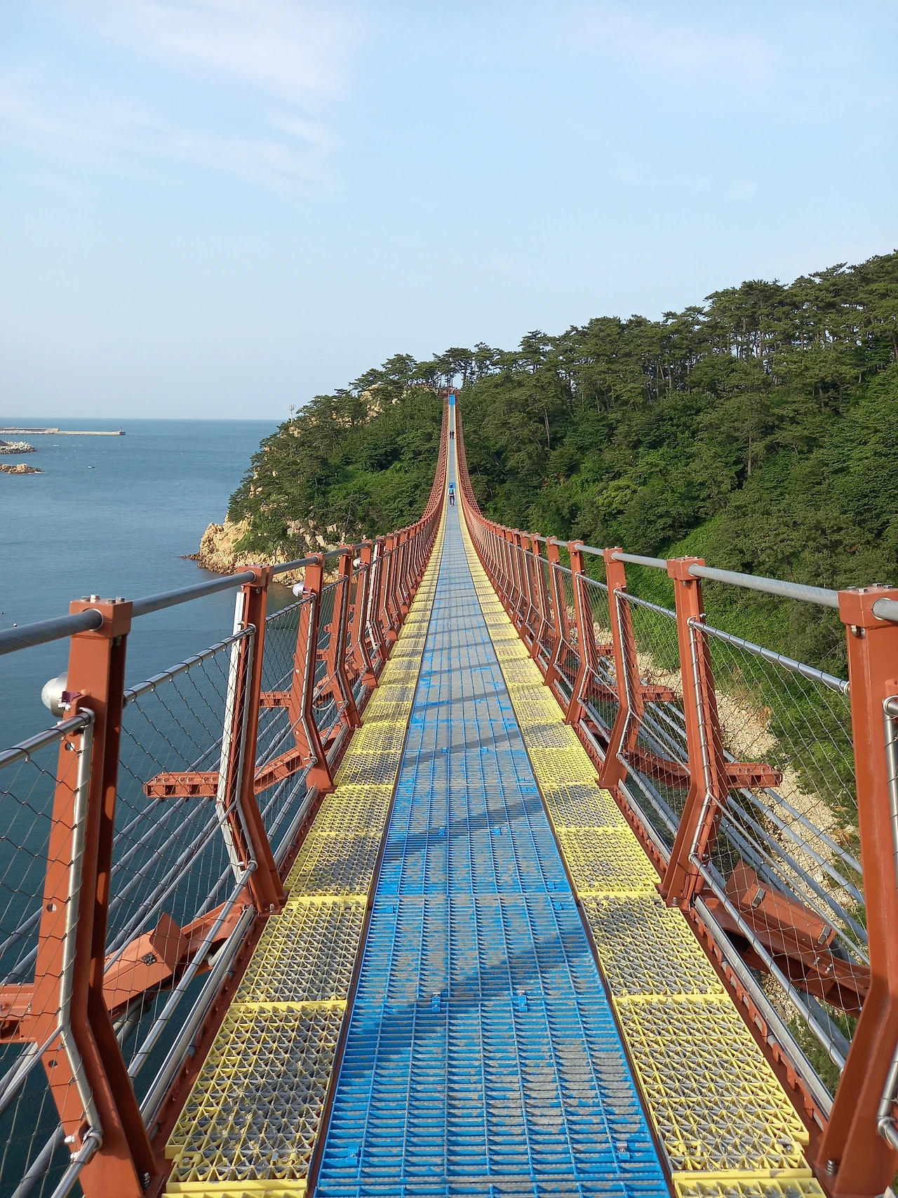 아무쪼록 평일 낮에 바닷뷰 카페서 오랜 친구와 대화하는 그 시간이 참 좋았다.그러다 저녁 먹기 전, 창문너머로 보이는 출렁다리에 다녀오기로 하고 그쪽으로 향했다.