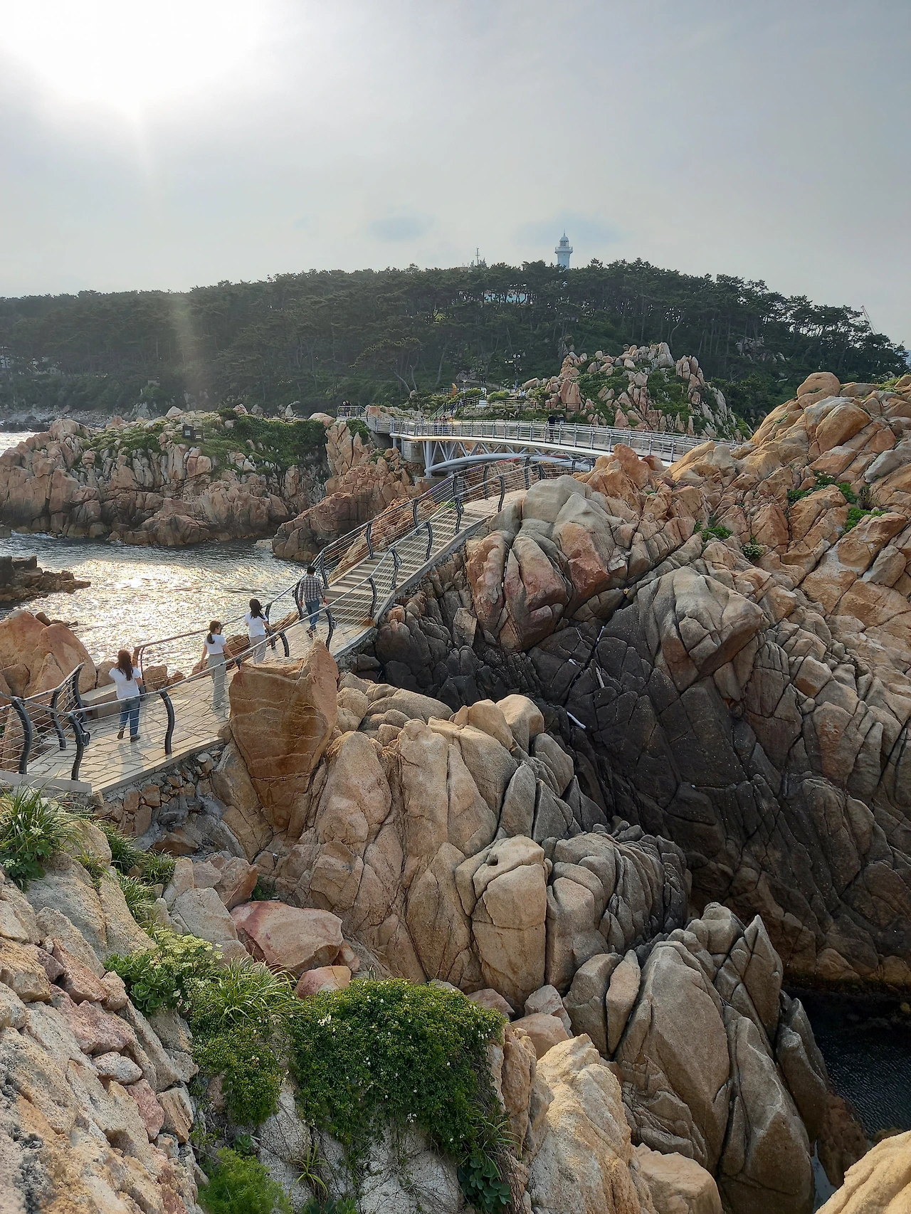 평일이라 입장료가 무료! 출렁다리가 크게 출렁거리지는 않아서 더 좋았다. 바다를 보며 걷는 그 기분은 말로 다 할 수 없다. 꽤 길었던 일방통행인 출렁다리를 건넌 뒤, 대왕암이 가까이 있어 그리로 갔다. 사실 잘 모르고 갔는데 거길 안 가는 실수를 저지를 뻔했더라.