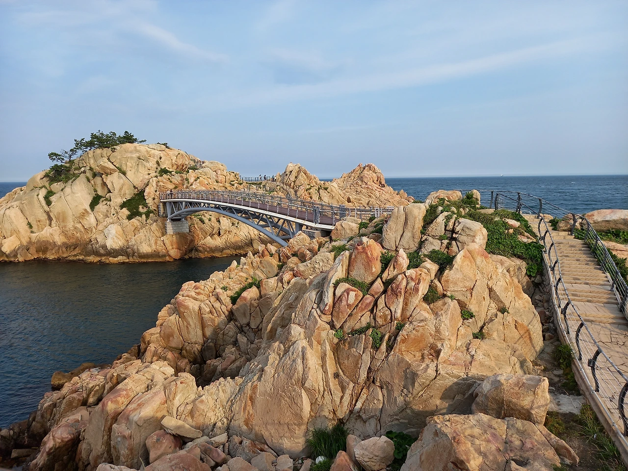 기가 막혔다. 내 손에 꼽을 만한 아름다운, 힐링되는 곳이었다. 아름답고, 멋지고, 웅장하고, 조화롭고. 어떤 수식어를 붙여도 감당할만했다. 바위와 바위 사이 다리를 놓은 것이 신의 한 수였고, 바위 사이로 보이는 바다와 그 위를 가로지르는 배의 모습. 감탄의 연속이었다.
