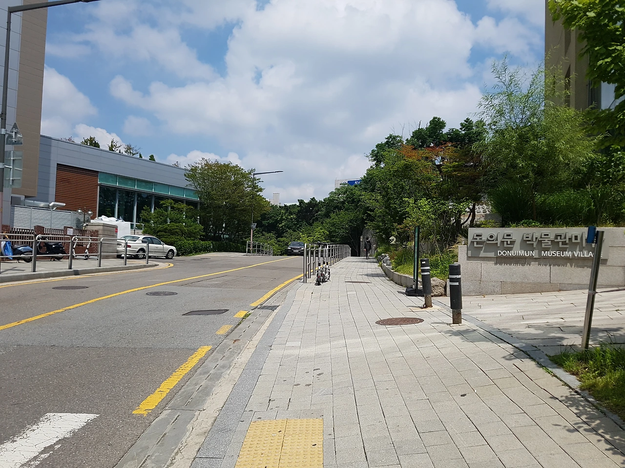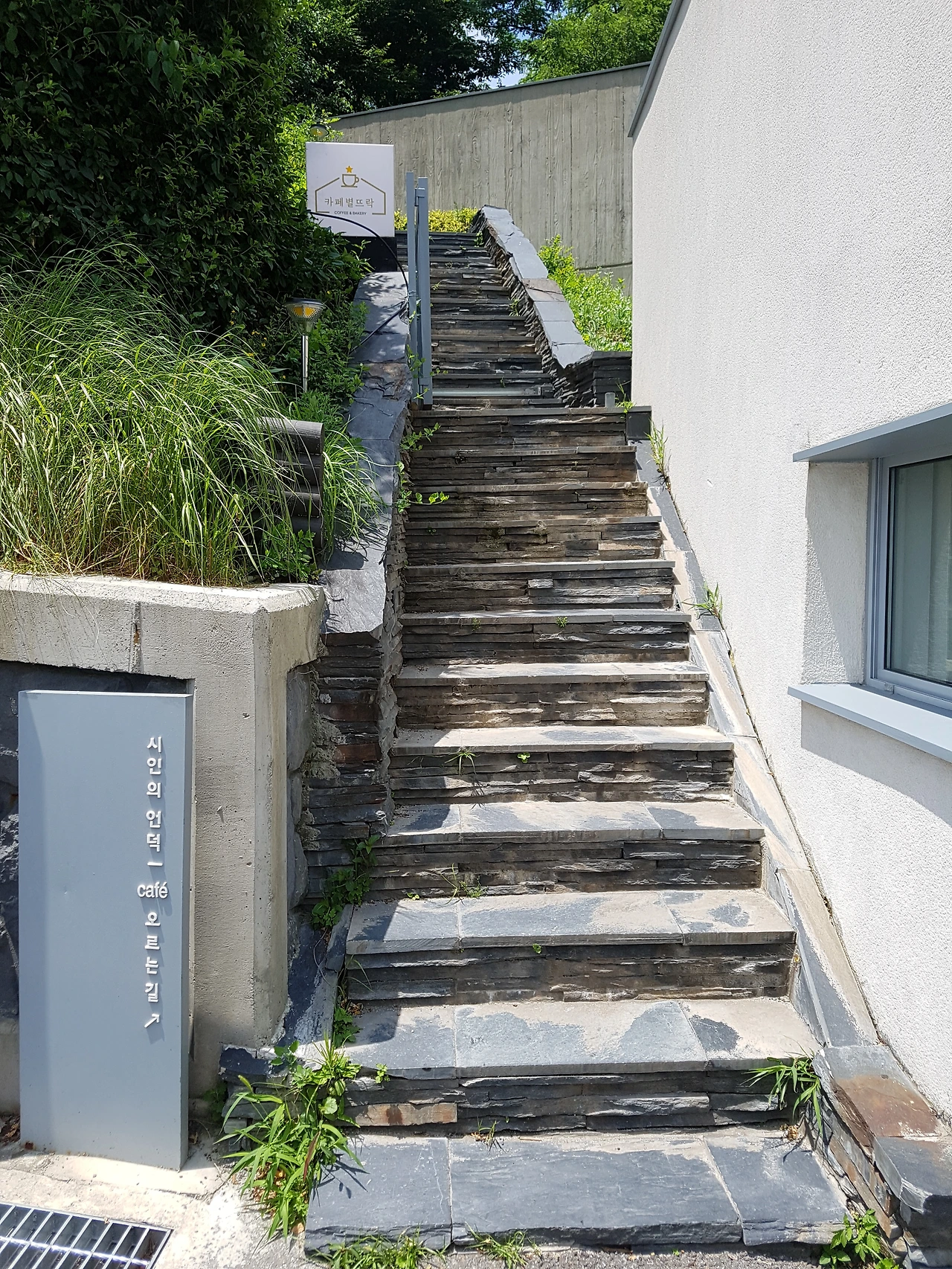드디어 산길이 끝나고 순성길의 끝이 보였다. 산을 내려와 도로를 건너 여러 조형물을 지나가니 윤동주문학관이 나왔다.