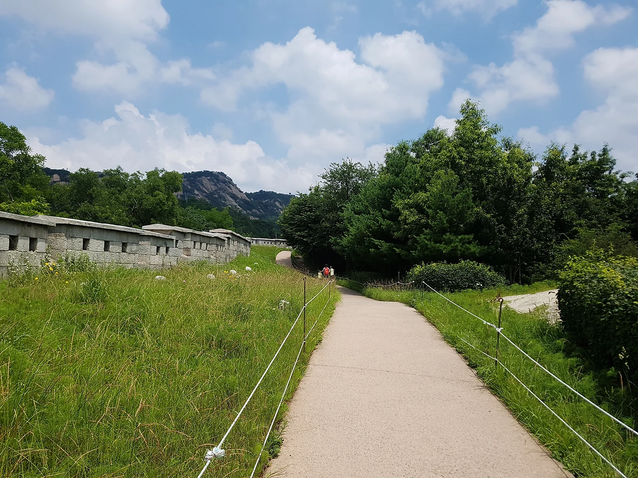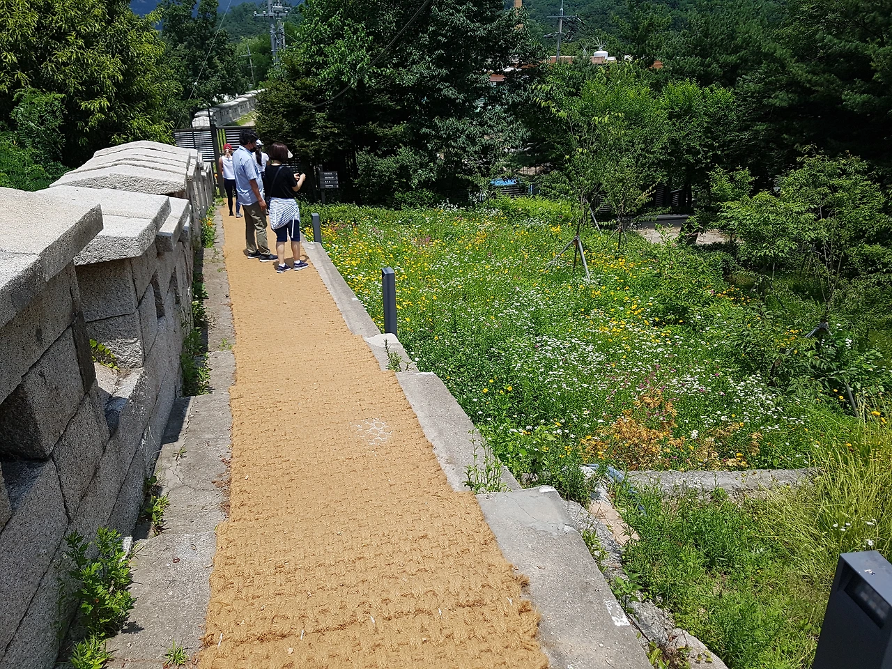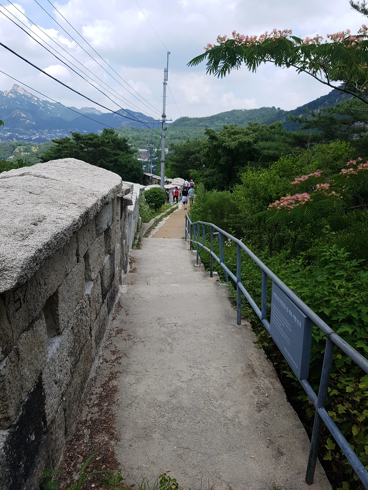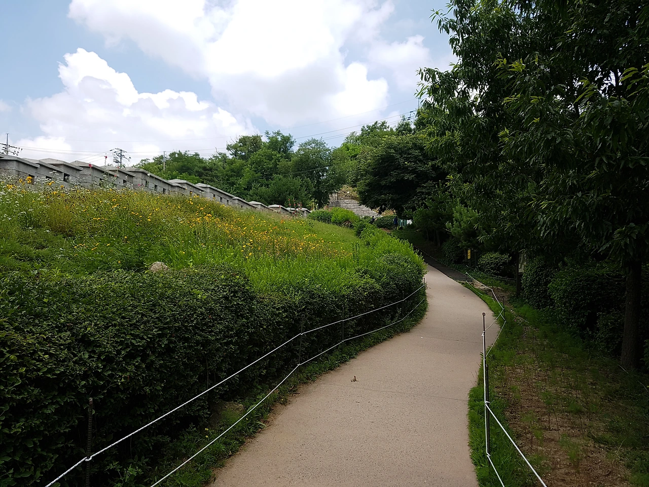 그리고 예쁜 꽃들이 때때로 보였는데 그저 예뻤다! 예쁜 꽃, 푸른 나무와 성벽 그리고 백악산 전경을 볼 수 있는 하산길이었다.