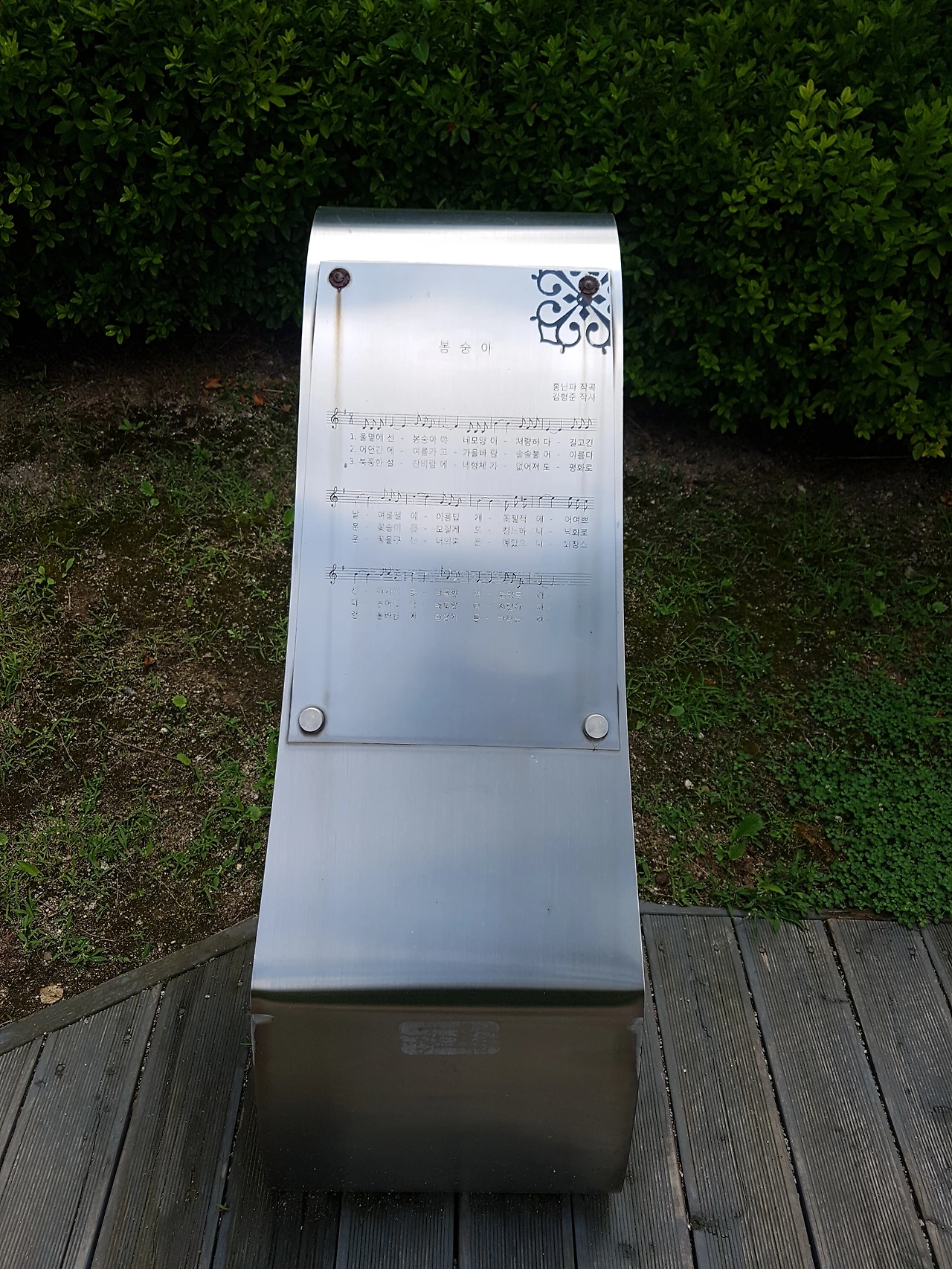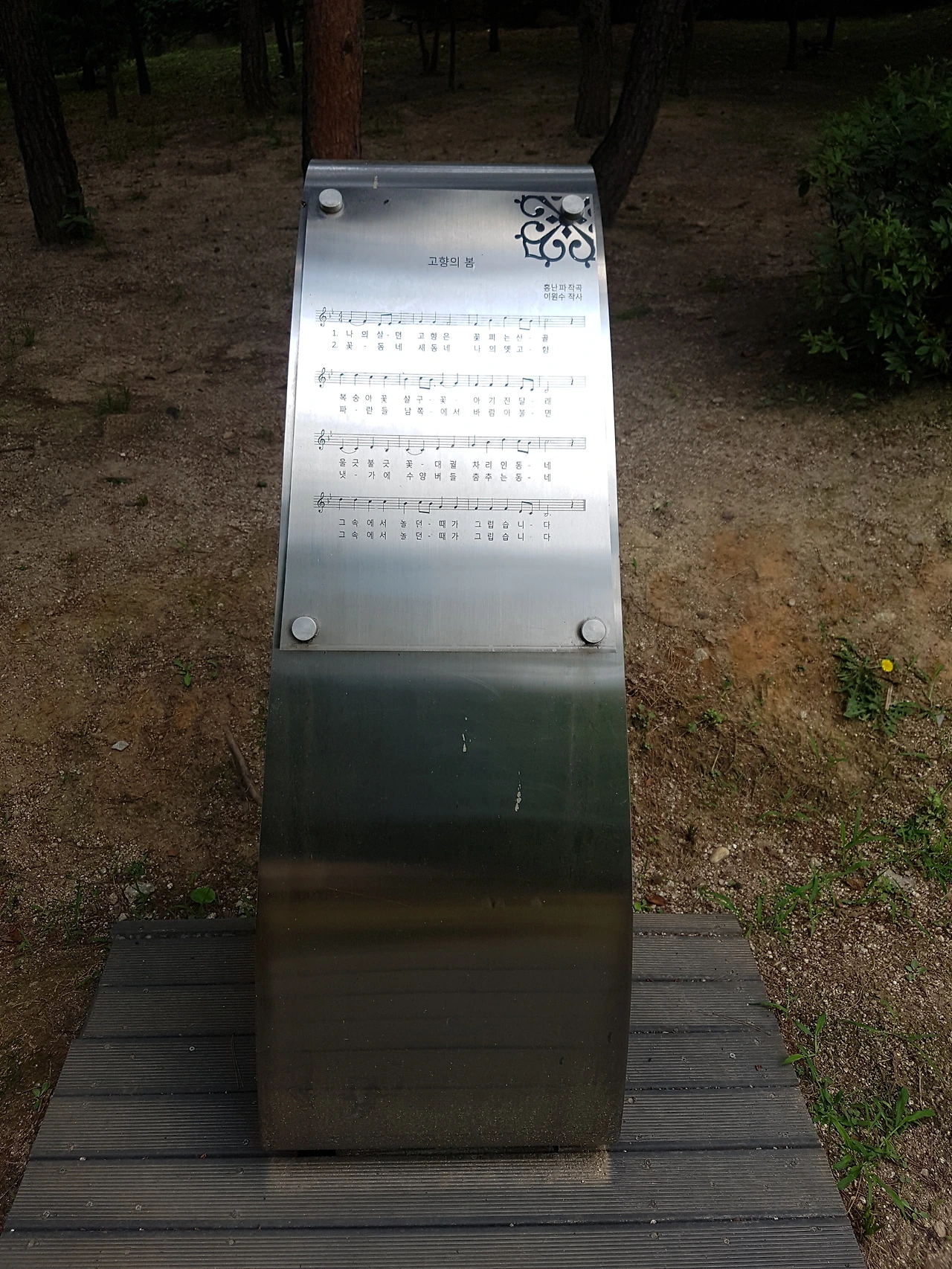 비교적 근래에 조성된 월암근린공원과 성벽을 지나갔다. 배델의 집터 표시물과 홍난파 작품의 악보가 그려진 조형물도 보였다.