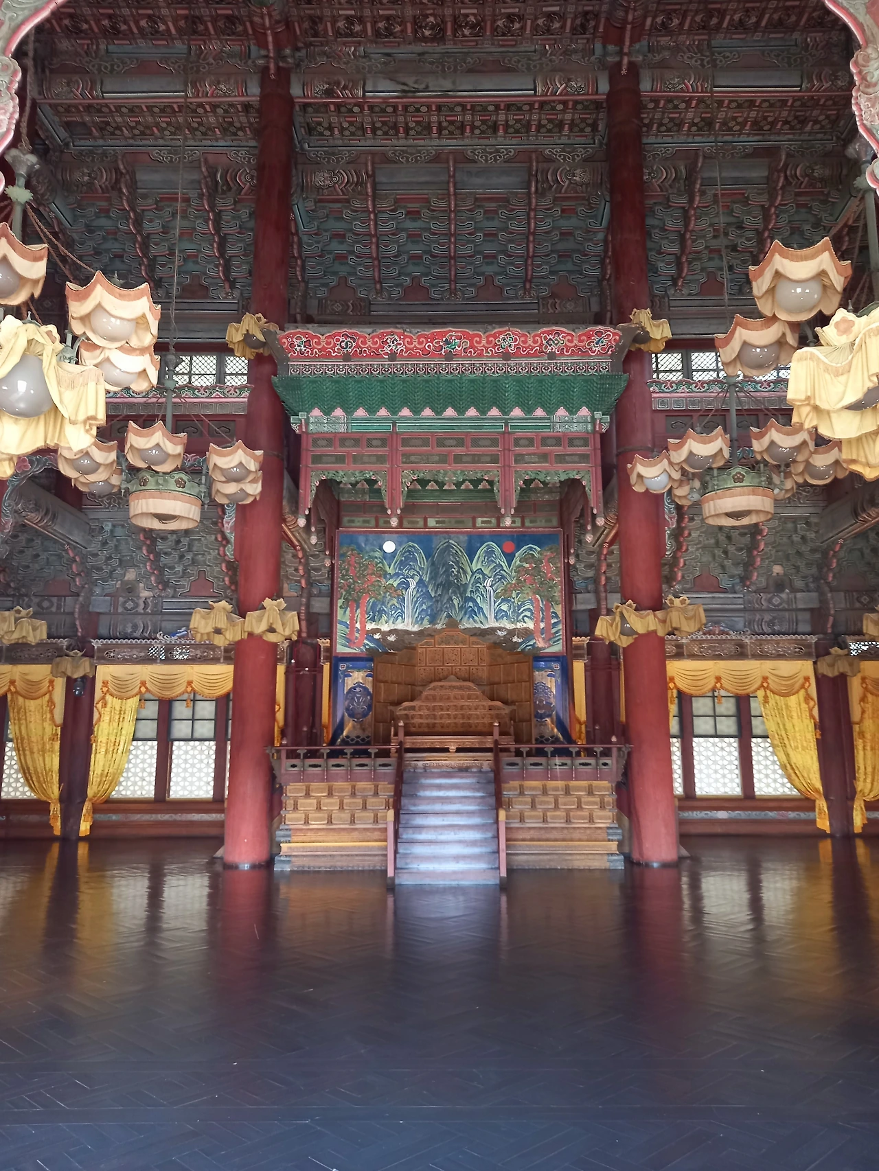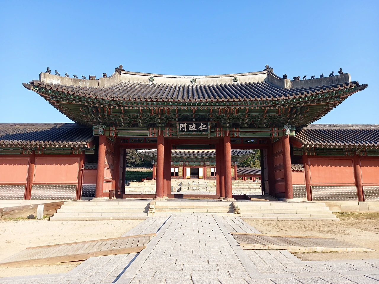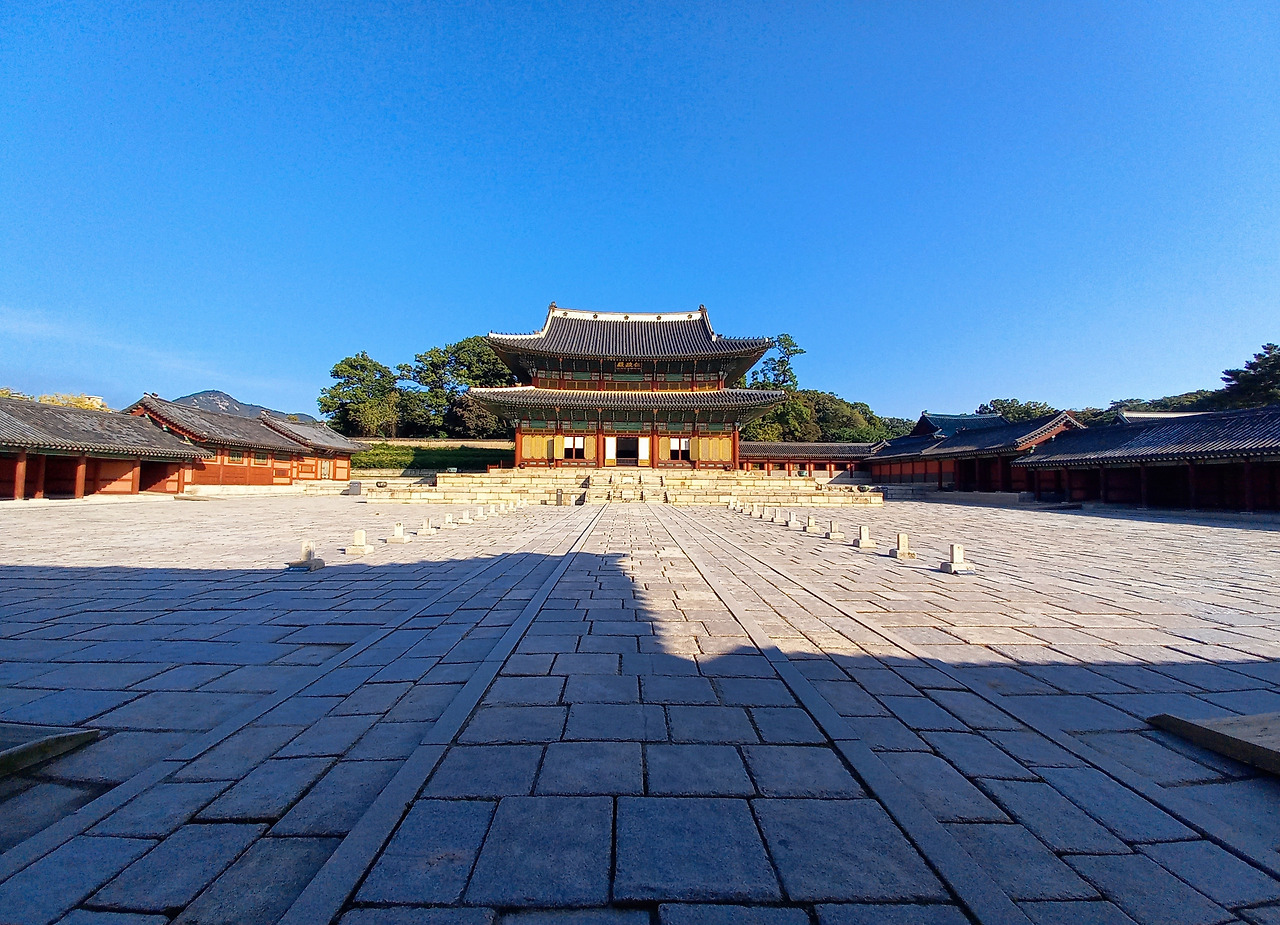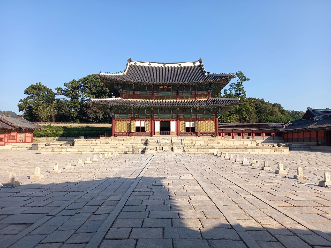 경복궁의 정전 근정전을 봤을 때의 광경과 비교적 유사했다. 외관상 중층처럼 보이지만 실상은 통층 구조라는 것도 같았다. 다만 뒷 배경이 북한산의 응봉으로 이어져 있다는 점이 달랐는데, 자연을 등진 정전의 모습이 굉장히 멋졌고 돋보이더라.