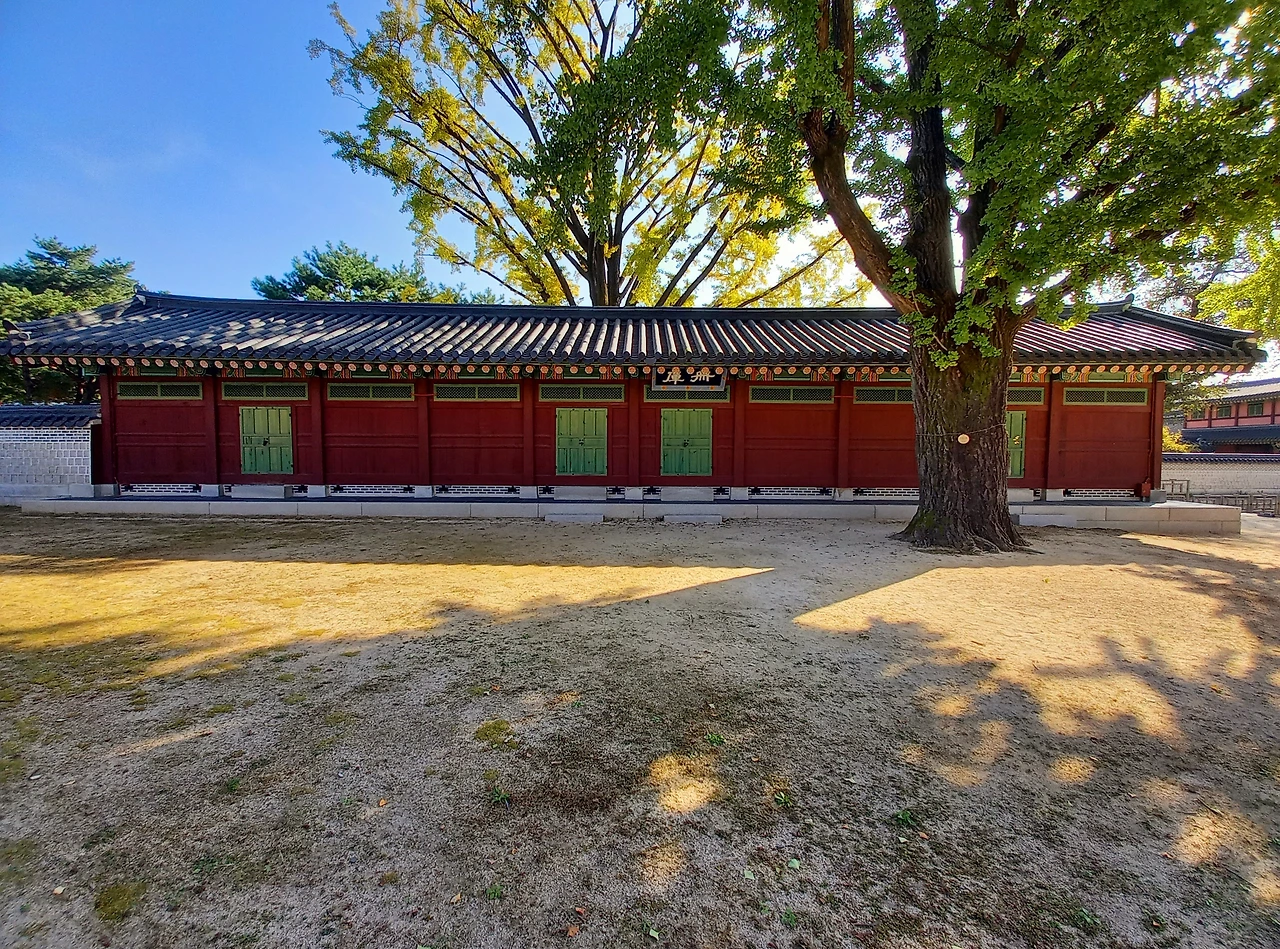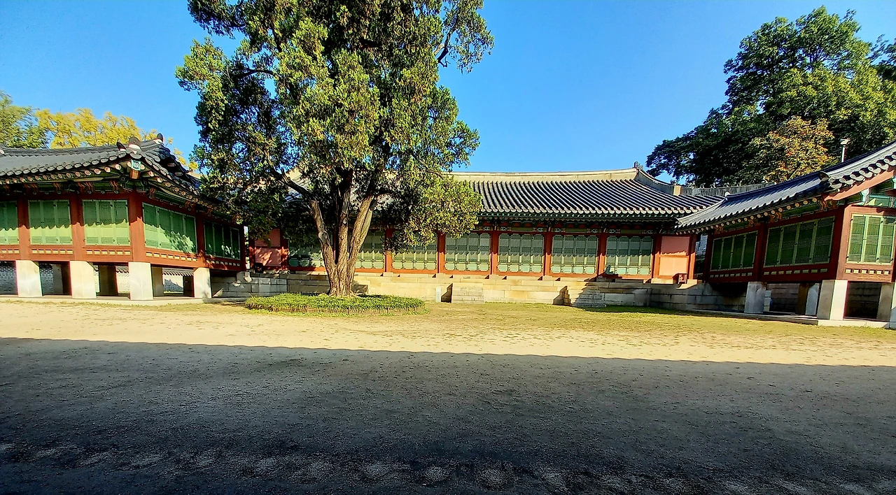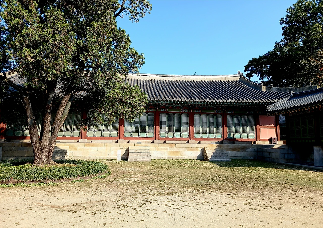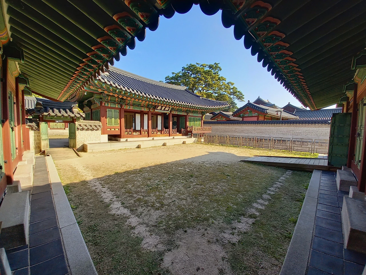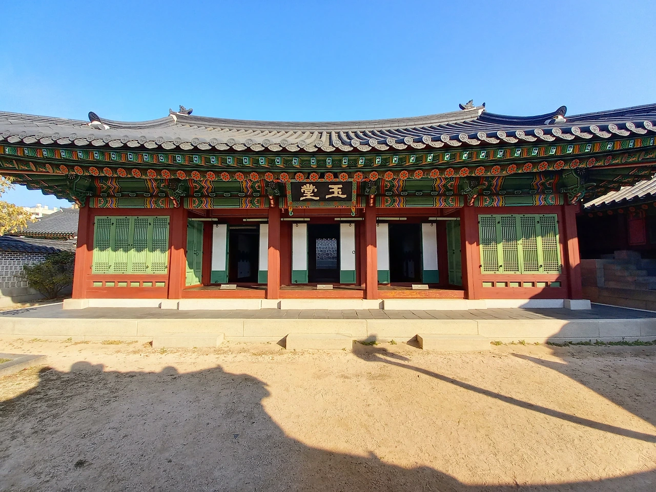 지난 궁궐들을 탐방하면서 확실히 인지하고 있는 것이 있다. 정전 옆에는 왕의 사무공간인 편전이 있다는 사실. 인정전 동쪽 옆 전각은 예상대로 편전이 있었고 그 이름은 선정전이다. 청기와를 올린 것이 색다른데 청기와는 가격이 비싸 귀하다고 여겨지며 궁궐 내에서도 흔히 볼 수 없다. 사실 복도각으로 인해 선정전 청기와를 잘 못 봤는데 오히려 원거리에서는 잘 보였다.