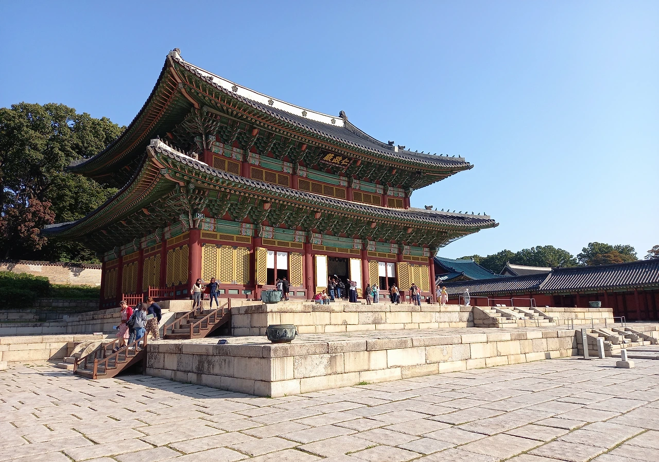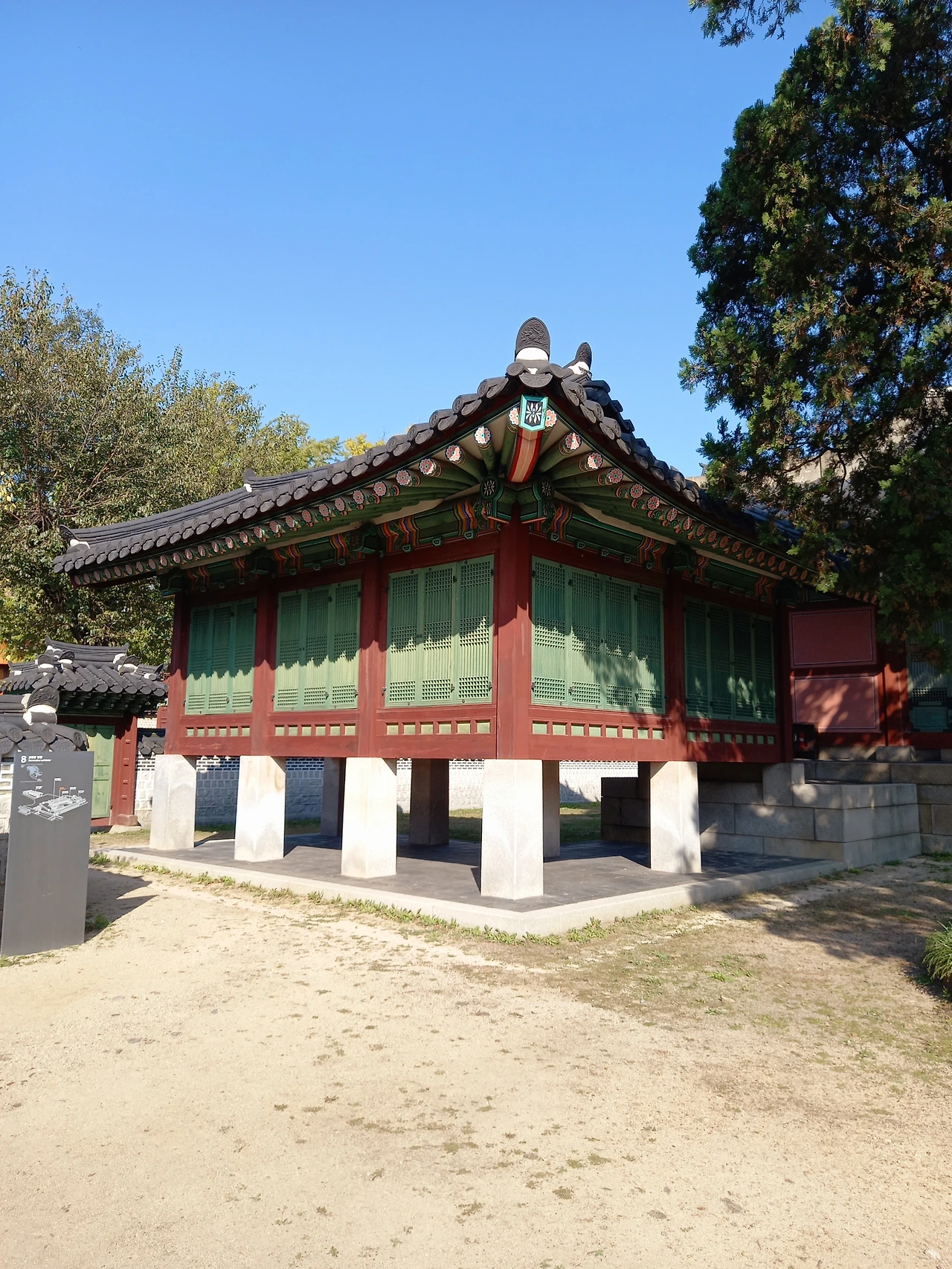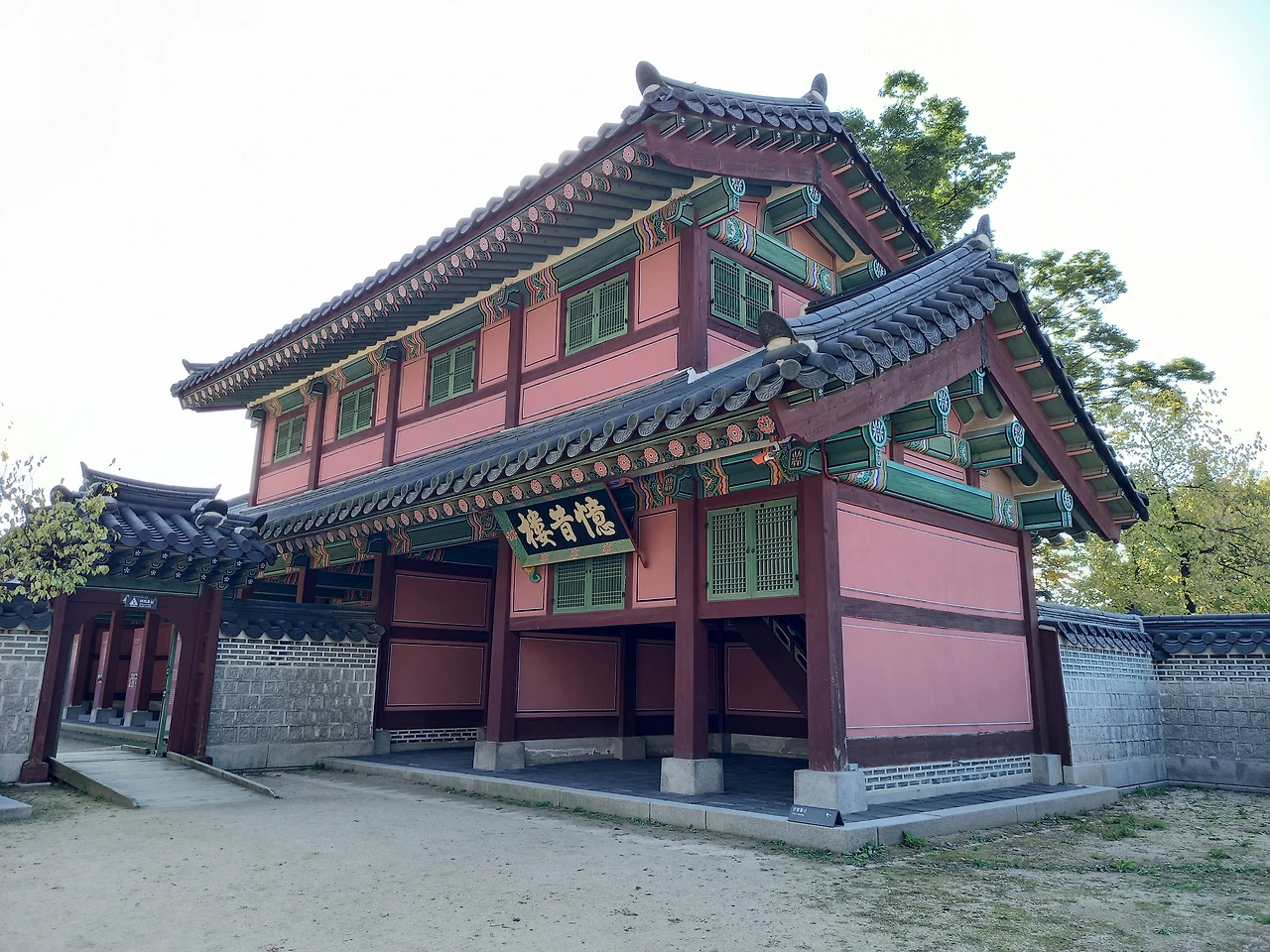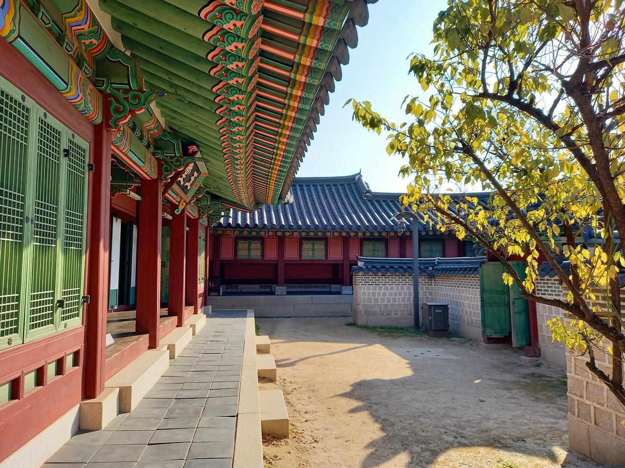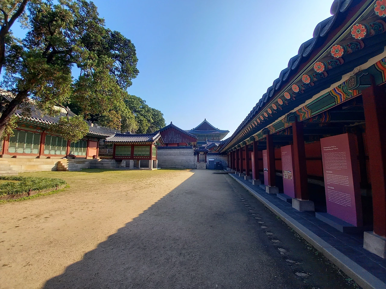 지난 궁궐들을 탐방하면서 확실히 인지하고 있는 것이 있다. 정전 옆에는 왕의 사무공간인 편전이 있다는 사실. 인정전 동쪽 옆 전각은 예상대로 편전이 있었고 그 이름은 선정전이다. 청기와를 올린 것이 색다른데 청기와는 가격이 비싸 귀하다고 여겨지며 궁궐 내에서도 흔히 볼 수 없다. 사실 복도각으로 인해 선정전 청기와를 잘 못 봤는데 오히려 원거리에서는 잘 보였다.