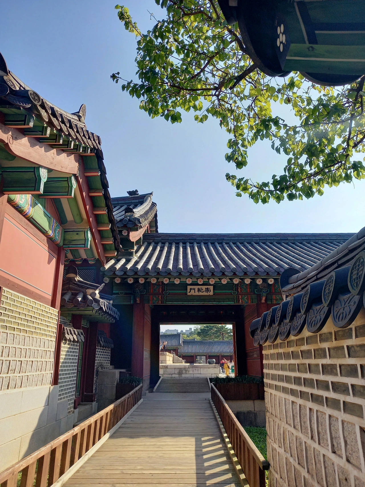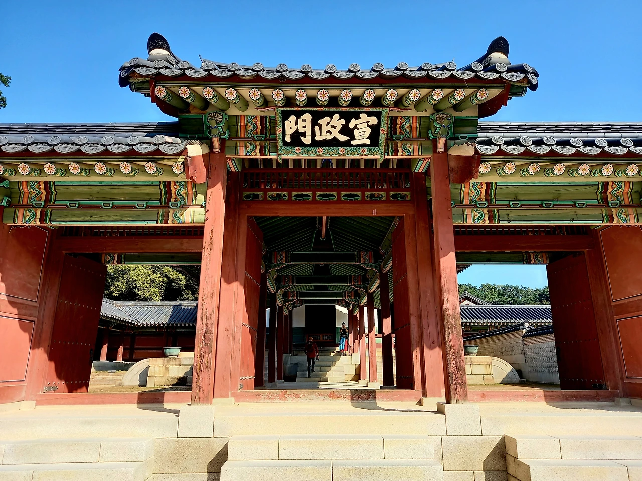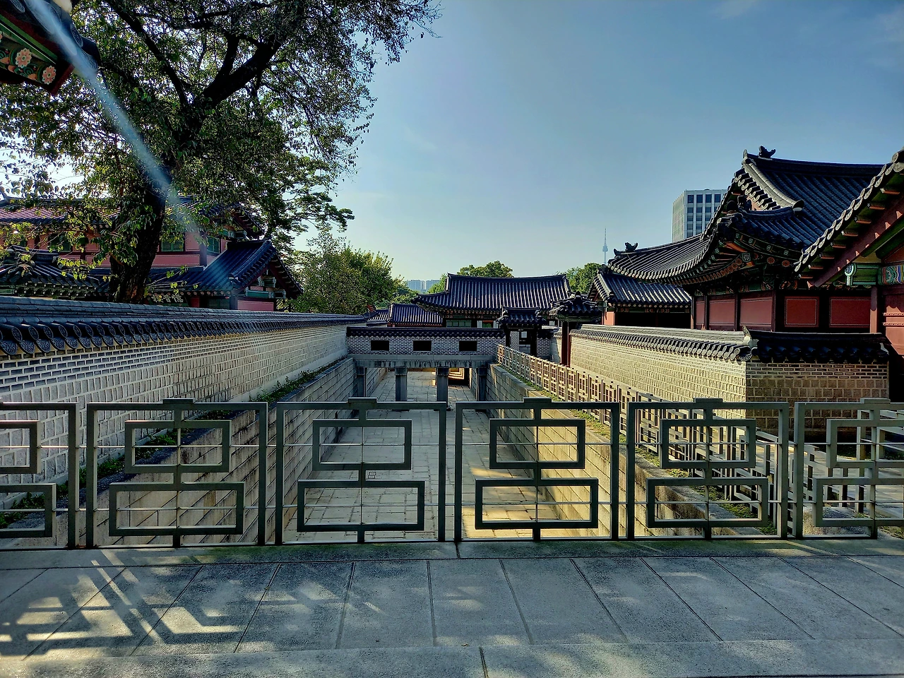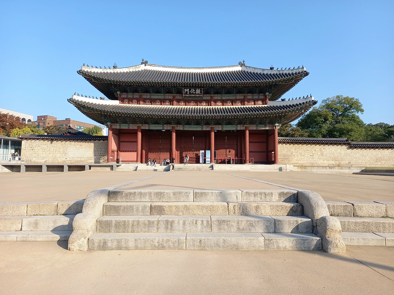 지난 궁궐들을 탐방하면서 확실히 인지하고 있는 것이 있다. 정전 옆에는 왕의 사무공간인 편전이 있다는 사실. 인정전 동쪽 옆 전각은 예상대로 편전이 있었고 그 이름은 선정전이다. 청기와를 올린 것이 색다른데 청기와는 가격이 비싸 귀하다고 여겨지며 궁궐 내에서도 흔히 볼 수 없다. 사실 복도각으로 인해 선정전 청기와를 잘 못 봤는데 오히려 원거리에서는 잘 보였다.