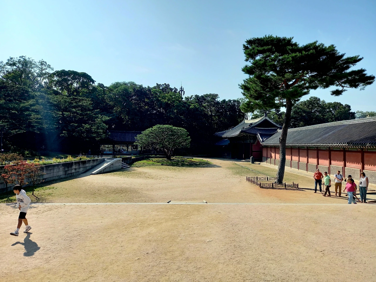 선정전을 나왔는데 저 위 카페 앞까지의 넓은 터의 아름다운 광경이 보였다. 이곳 터에는 원래 동쪽 궐내각사가 있던 자리로 왕명출납을 맡았던 승정원과 언관들의 대청, 대신들의 회의 공간 빈청, 왕의 시중을 들던 내시들의 공간인 내빈원, 음식을 장만하고 그 음식을 담는 그릇을 관리했던 사옹원이 있었다고 한다.