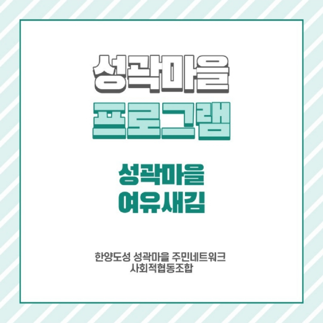 한양도성 성곽마을에 관심을 가지다 보니 좋은 프로그램을 알게 되었다. <한양도성 성곽마을 주민네트워크 사회적협동조합>에서 개최하는 '성곽마을 여유새김 프로그램'인데