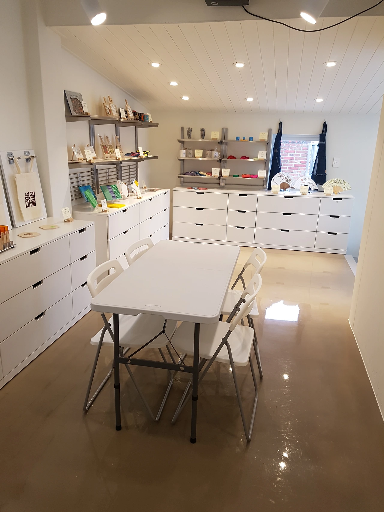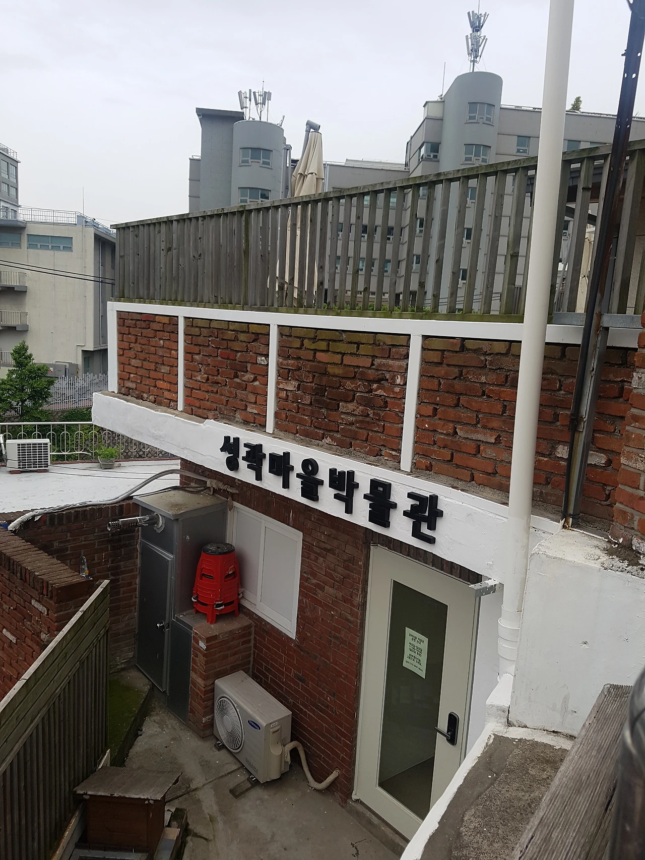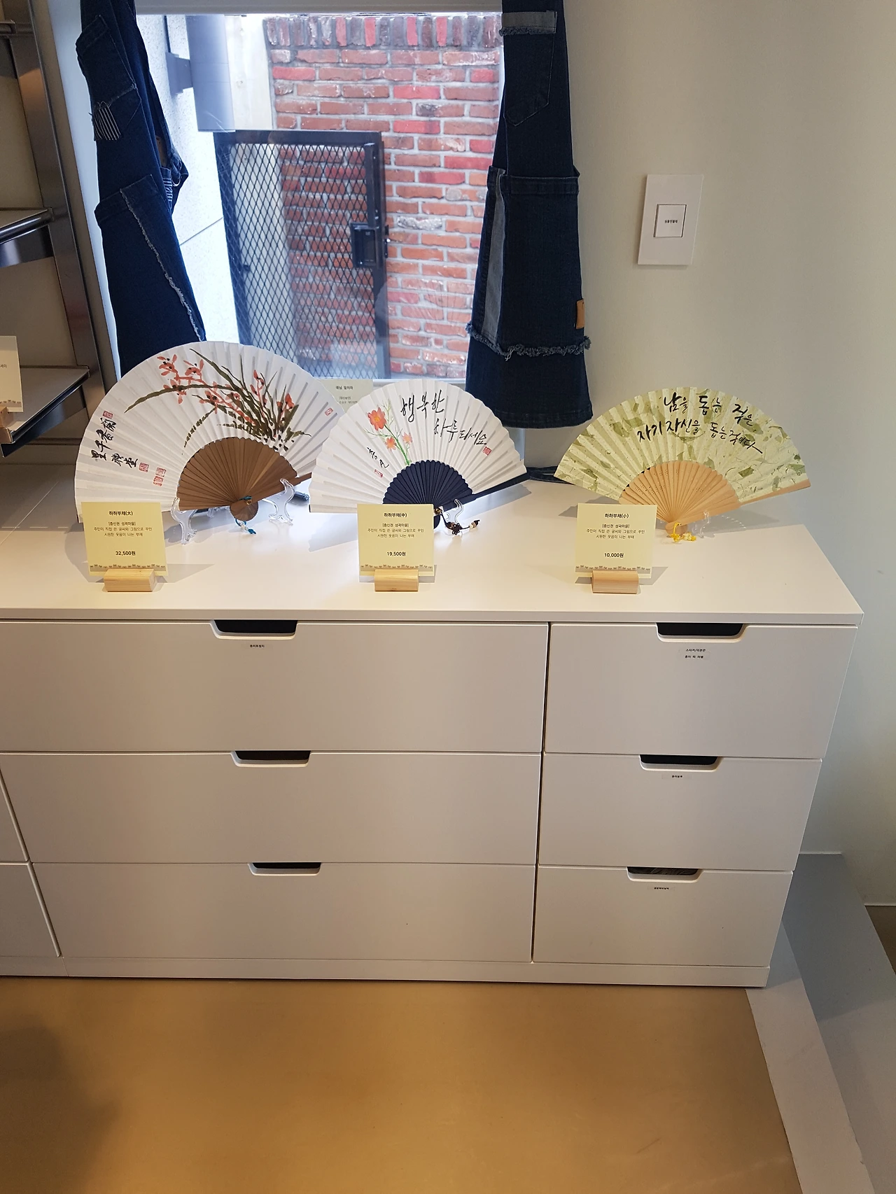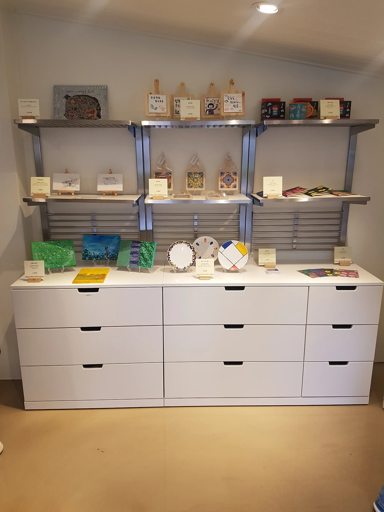 정겨운 골목을 걷다 보니 올봄에 개관한 성곽마을 박물관에 다다랐다! 꼭 와보고 싶었던 곳이었는데, 2층에는 성곽마을 예술가들의 굿즈 상품이 진열되어 있었다.