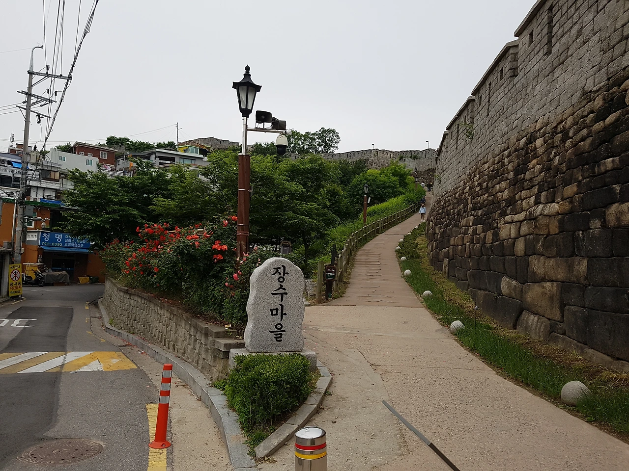 장수마을을 옆 성벽 길을 지나 암문을 통해 낙산공원에 진입한 뒤, 골목길로 장수마을 안으로 들어왔다.