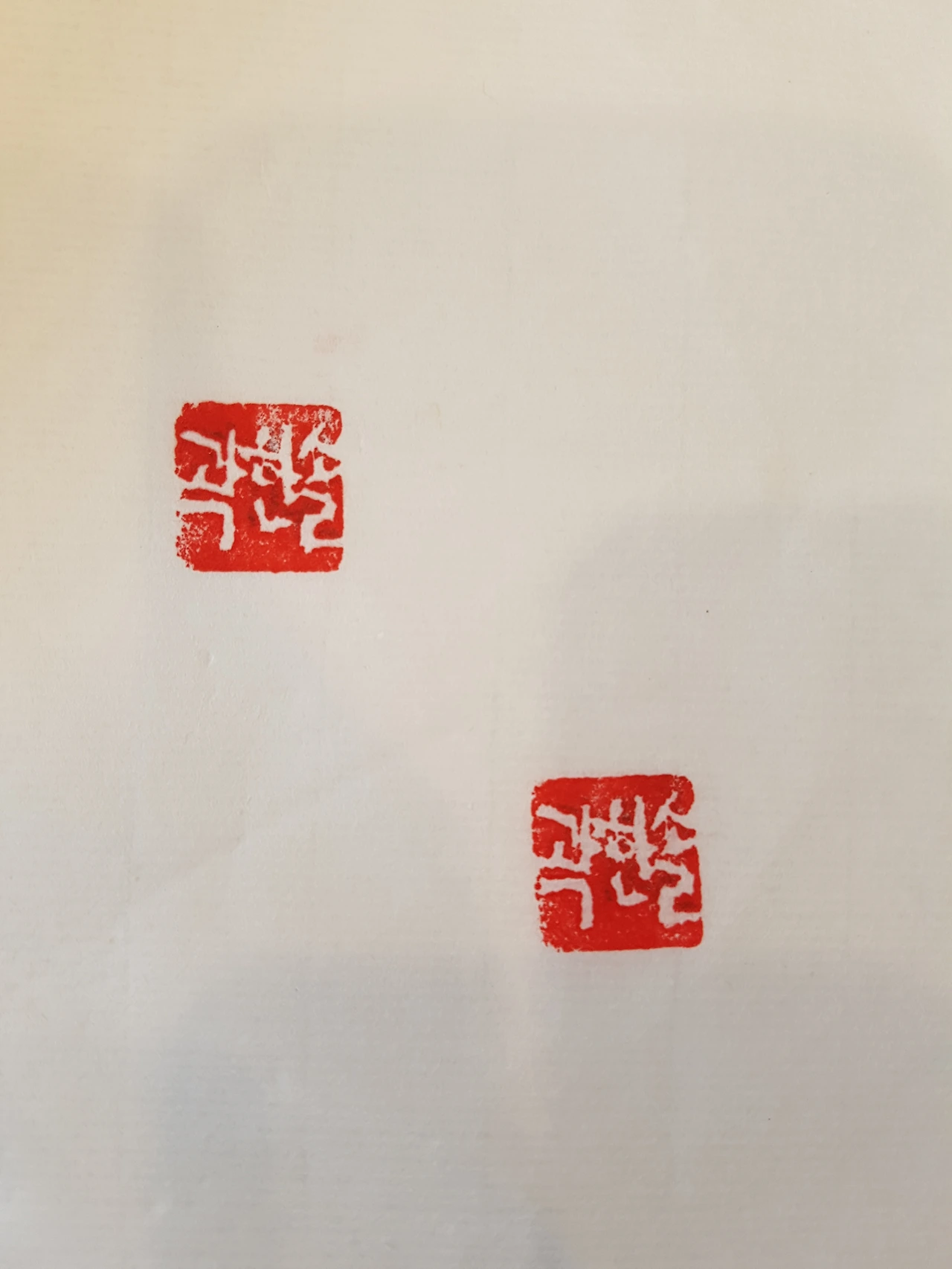다음에는 종이에 이름을 쓴 글씨를 화선지에 본떴고 반대면으로 돌려 전각에 맞춰 검정 플러스 펜으로 글씨를 덧씌우며 도장 위에 글씨를 새겼다. 그런 다음 조각칼로 글씨를 팠다. 이 모든 과정이 생각 이상으로 쉽지 않았다. 다만 강사님이 도와주셔서 우려했던 것보다는 좋은 결과가 나왔다!