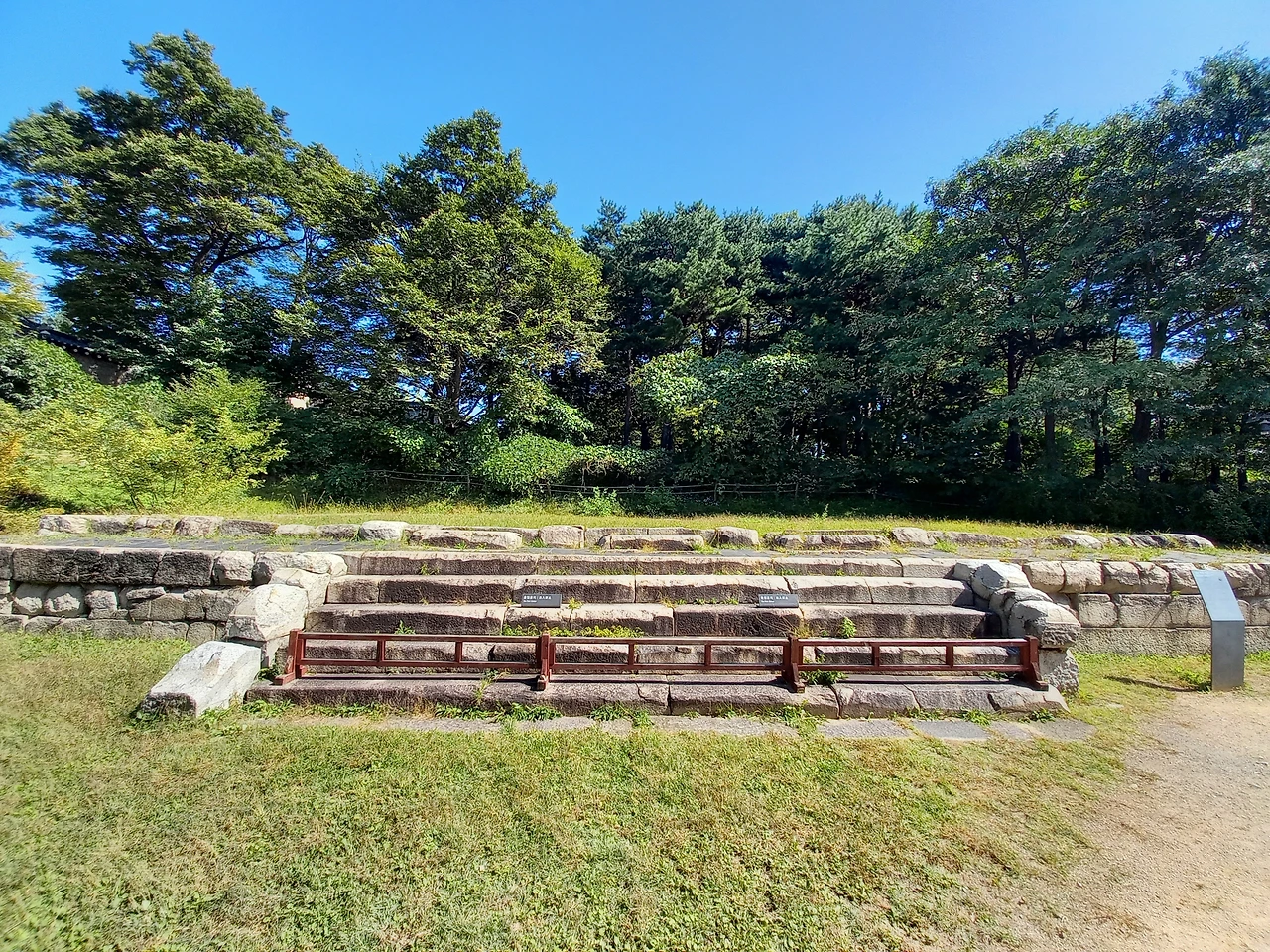 창경궁 왕비의 침전인 통명전 일대에 연못과 화계(꽃 계단)가 아름다움을 대표했다면, 이곳 교태전 뒤뜰에는 경회루 연못에서 파낸 흙으로 돋우어 만든 화계와 그 위 네 개의 아미산 굴뚝이 있다.
