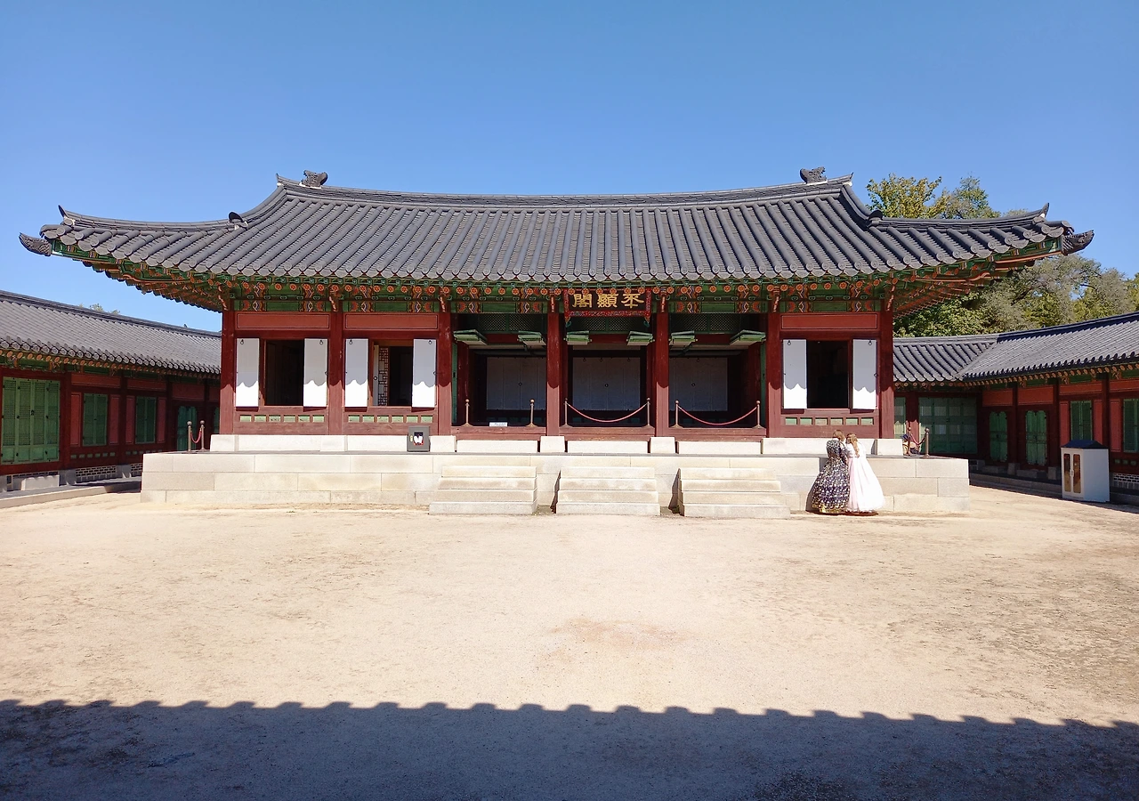 여러 건축물들이 있는 줄 알았는데, 자경전처럼, 사방을 둘러보니 여러 채가 연결된 하나의 큰 집이었다. 배경지식이 없었더라도 딱 봐도 비교적 최근에 지어진 건물임이 느껴질 정도로, 건축물의 색감이 선명하고 깨끗하게 보였다. 상대적으로 인지도가 낮으며 인적도 드물었지만, 외국인 커플, 친구와 한복을 입고 온 방문객이 이곳에서 다양한 각도로 여러 가지 사진을 찍을 만할 정도로 그 공간이 매우 아름다웠다.