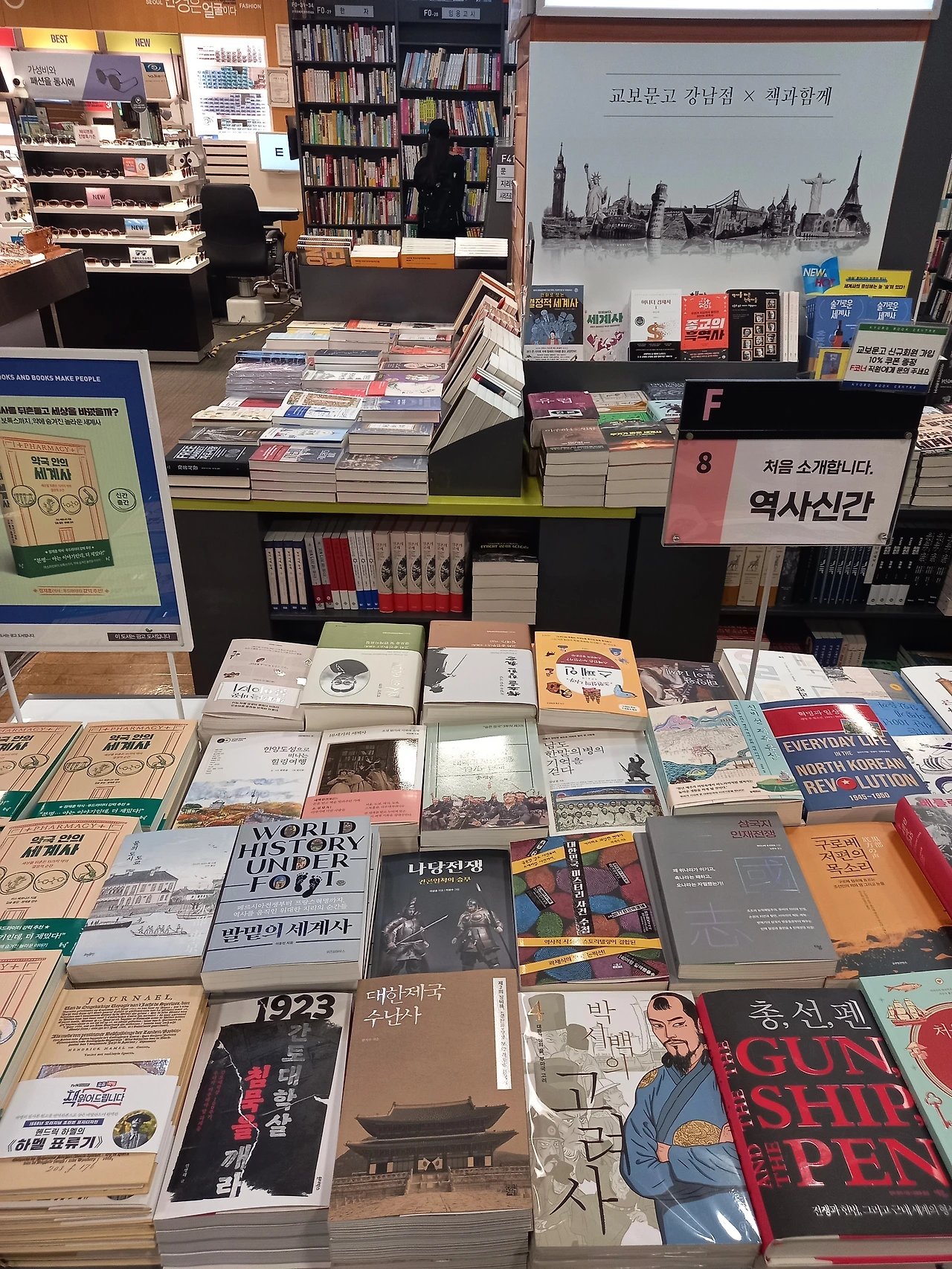 광화문점, 강남점 등에는 역사 신간 매대에 진열되었다가 한 달 지나 역사 매대에 일주일 정도 있다가 다 빠지고 책장에 1권만 꽂혀있다.