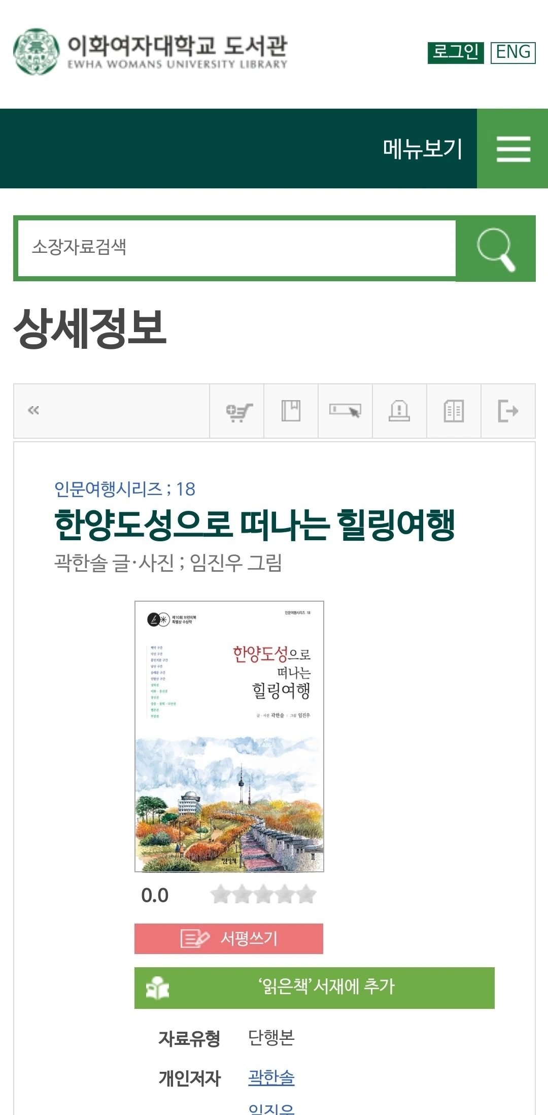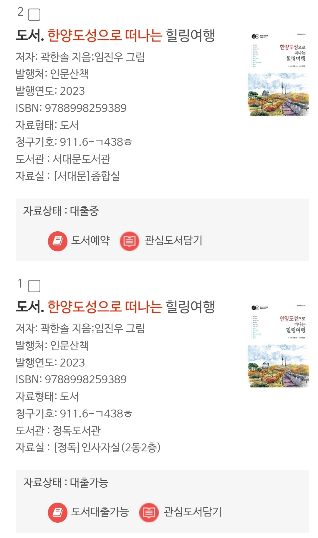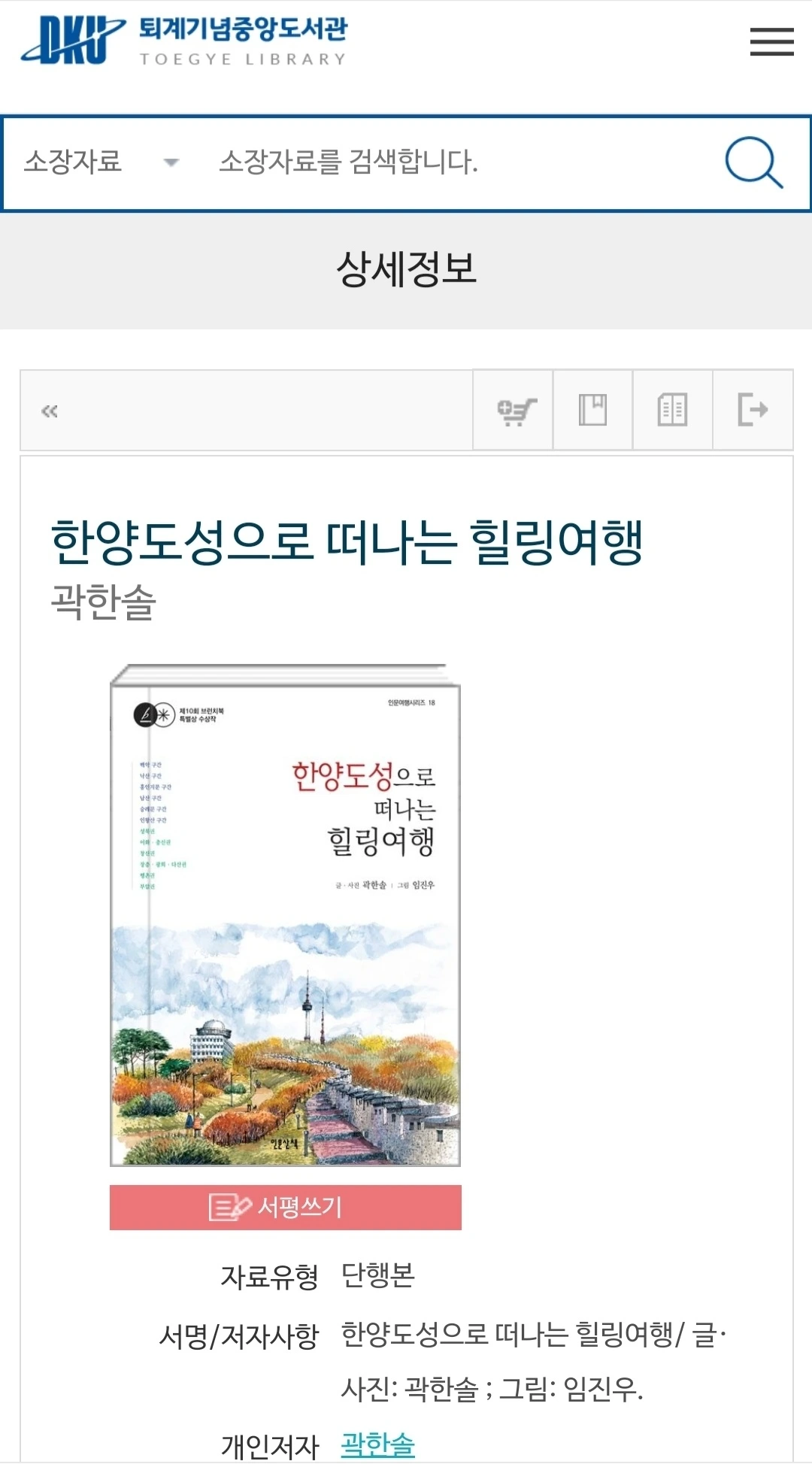 그래서 전국 곳곳의 지역 도서관에도 도서가 많이 많이 진열돼 많은 사람들이 한양도성과 그 아름다운 탐방길을 아셨으면 좋겠다. 독자 여러분, 여유가 나신다면 거주 지역 도서관 등에 '희망 도서 신청' 부탁드린다!