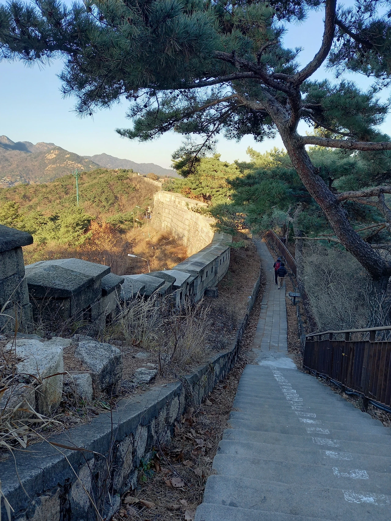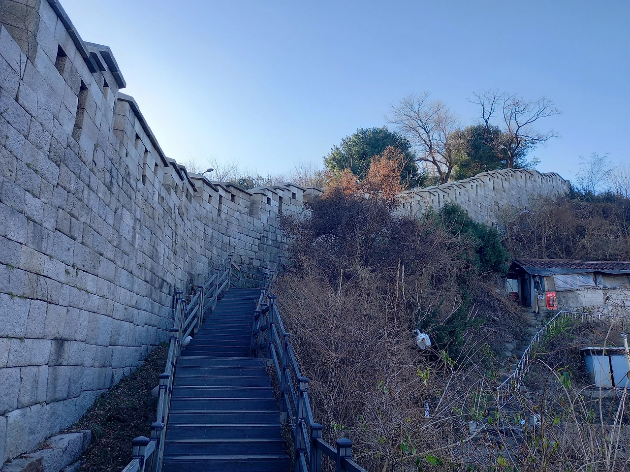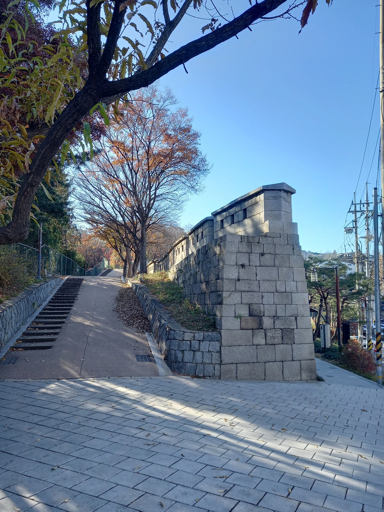 곡성은 효과적인 방어를 위해 성벽의 일부분을 둥글게 돌출시킨 것을 말하는데 인왕산과 백악게 하나씩 있다. 이전에는 보지 못했던 계단 아래로 곡성의 돌출된 성벽을 바깥에서 둘러볼 수 있었다. 역시 곡성 주변도 부분 부분 공사 중이라 통행길에 제한이 있었는데, 공사가 끝나면 곡성으로 이어지는 길을 통해 걸을 수 있을 것이다. 다음에는 오늘 걸었던 길이 아닌 바로 곡성으로 향하는 길로 가보려 한다.