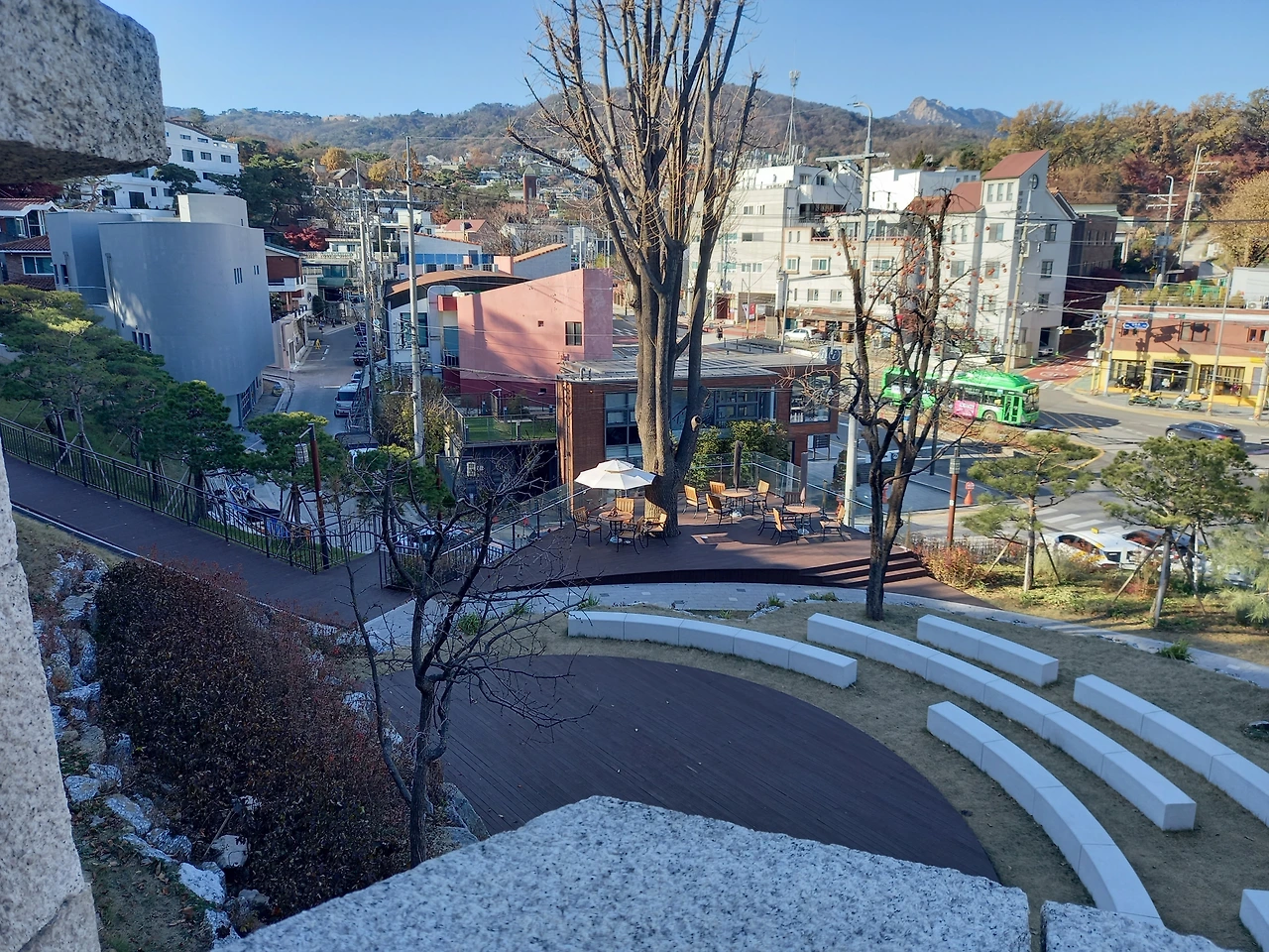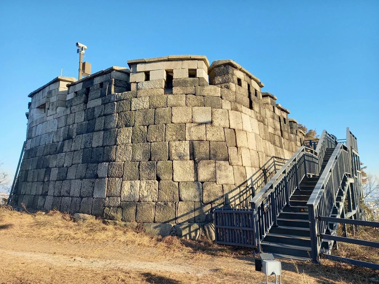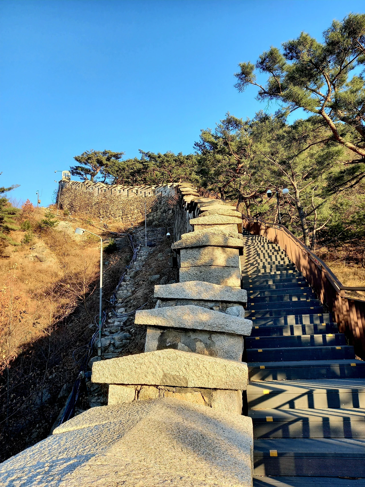 곡성은 효과적인 방어를 위해 성벽의 일부분을 둥글게 돌출시킨 것을 말하는데 인왕산과 백악게 하나씩 있다. 이전에는 보지 못했던 계단 아래로 곡성의 돌출된 성벽을 바깥에서 둘러볼 수 있었다. 역시 곡성 주변도 부분 부분 공사 중이라 통행길에 제한이 있었는데, 공사가 끝나면 곡성으로 이어지는 길을 통해 걸을 수 있을 것이다. 다음에는 오늘 걸었던 길이 아닌 바로 곡성으로 향하는 길로 가보려 한다.