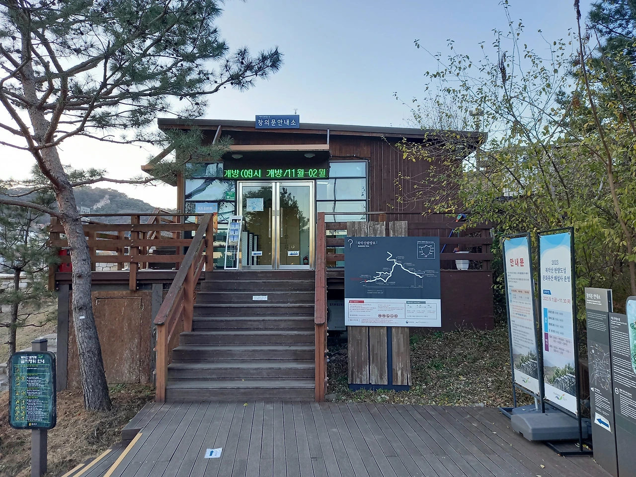 창의문 근방에 다다랐을 때 도로 건너 인왕산 성벽이 눈에 들어왔다. 창의문 안내소는 말바위 안내소와는 마찬가지로 이제는 출입 시 패찰을 받고 반납할 것 없이 그냥 통과가 가능했다. 다만, 계절에 따라 개방시간은 있으니, 오후에 방문하실 분들은 출입 시간을 확인하시는 것은 필요하겠다.