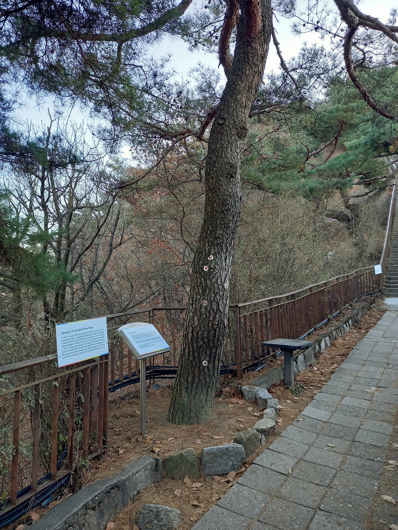 청운대에서 멀지 않은 곳에는, 1·21 사태 소나무가 있다. 수령이 200년 정도 된 나무인데 15발의 총탄 자국이 남아 있다. 이 총탄 자국은 1968년 1월 21일, 청와대를 습격하려 침투한 김신조를 포함한 북한 특수부대원들과 우리 군경이 교전한 흔적이다. 분단의 현실 속에서 역사적인 사건이 발생한 장소이자 이 흔적을 알리는 소나무. 총탄이 많이 박혔음에도 아직까지 그 자리를 우뚝 지키고 있는 소나무를 보니 여러 감정이 들었다.