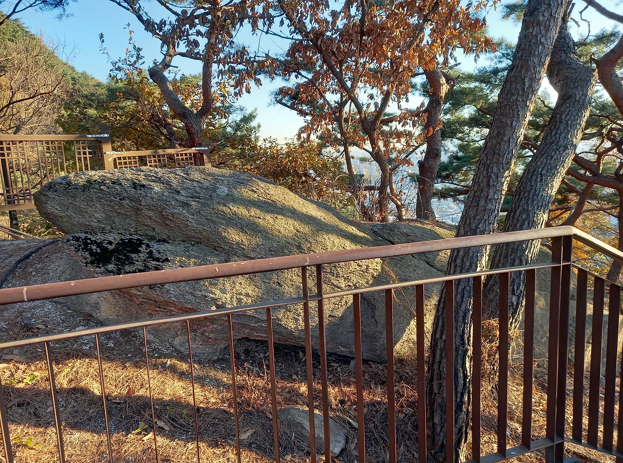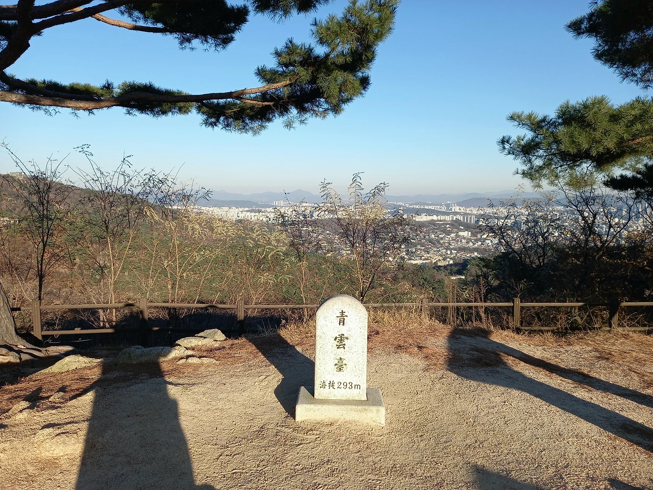 청운대는 청와대를 방호하기 위해 1979년 10월부터 북악통제대 및 발칸진지를 설치 운영한 자리였는데, 2000년 다른 곳으로 이전하면서 북악산의 옛 모습으로 복원하며 북한산의 백운대와 대비되는 이름의 청운대로 조성되었다. 청와대와 경복궁 방면의 도심을 바라볼 수 있는 곳이다. 한양도성 완주인증서 발급을 위한 인증숏 지점이기도 하니, 청운대 표지석에 얼굴이 나오도록 해서 사진을 하나 찍은 다음 길을 나섰다.