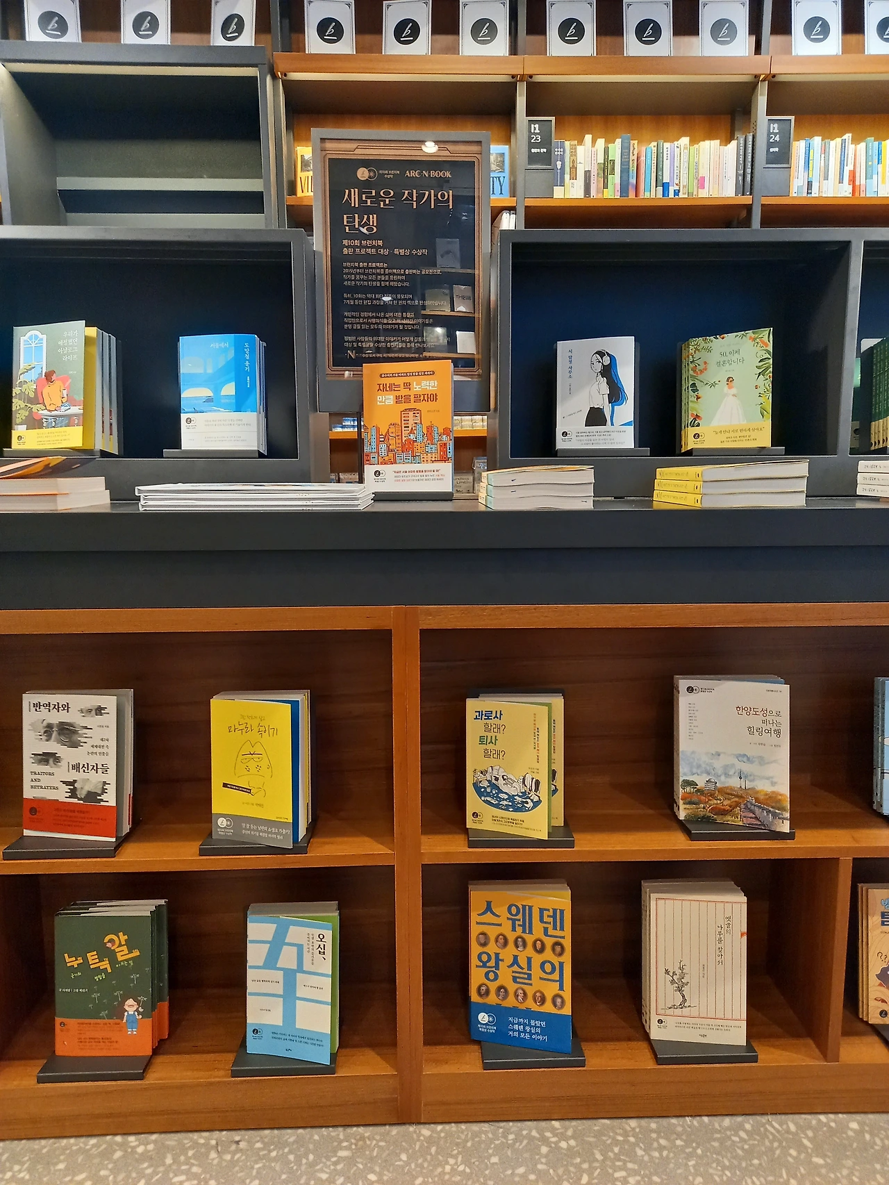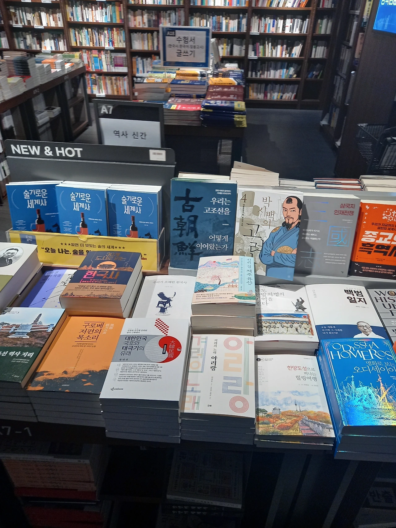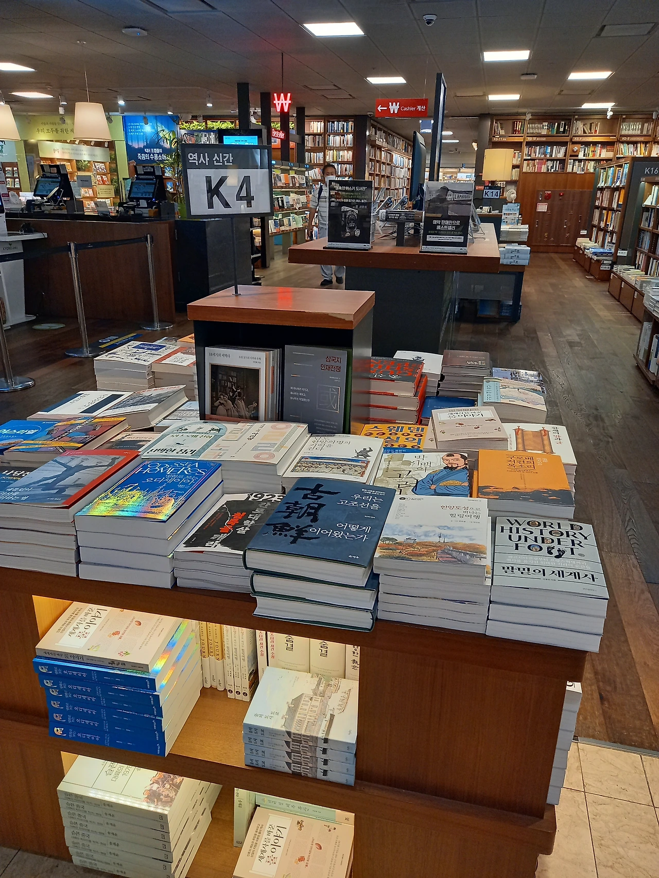 그래서 출간 직후 교보문고에 입고된 내 책들을 살펴보는 서점 투어를 했다. 첫 2주 정도는 광화문, 강남, 잠실 등 일부 큰 규모의 지점에서 역사신간 매대에 올려져 있어서 뿌듯했다. 광화문과 강남 지점에는 그 후 역사 매대에 올랐다가 한 주 지나 책꽂이로 들어가 이젠 재고가 있는 모든 서점에는 책꽂이에 있다.