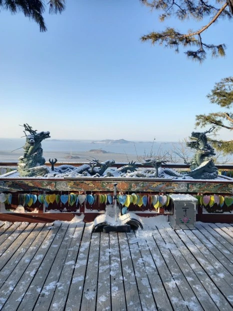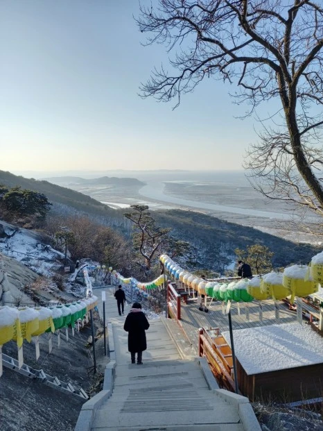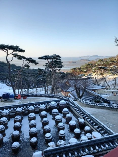 1일 차 마지막 행선지는, 교동도의 전망대에서 일몰 풍경을 보는 것이었다. 그런데 하필 그때 눈이 와서 밥만 먹고, 숙소로 곧장 가 하룻밤을 보냈다. 이 아쉬움은 다음날 이른 아침 석모도에 있는 보문사를 방문하면서 바로 풀렸다.