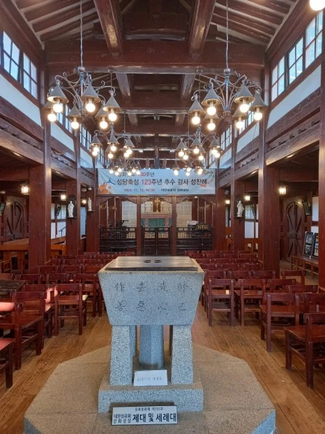 큰 기대를 안 하고 간 곳인데 굉장히 인상 깊었고 좋았다. 한국에서 최초로 지어진 한옥 성당답게 이색적이었다. 기와 건물이면서도 한쪽 끝에는 단청이 아닌 십자가가 달려있으며, 벽돌로 이루어진 외관의 조화. 익숙하면서도 익숙하지 않았기에 보는 눈이 즐거웠다.