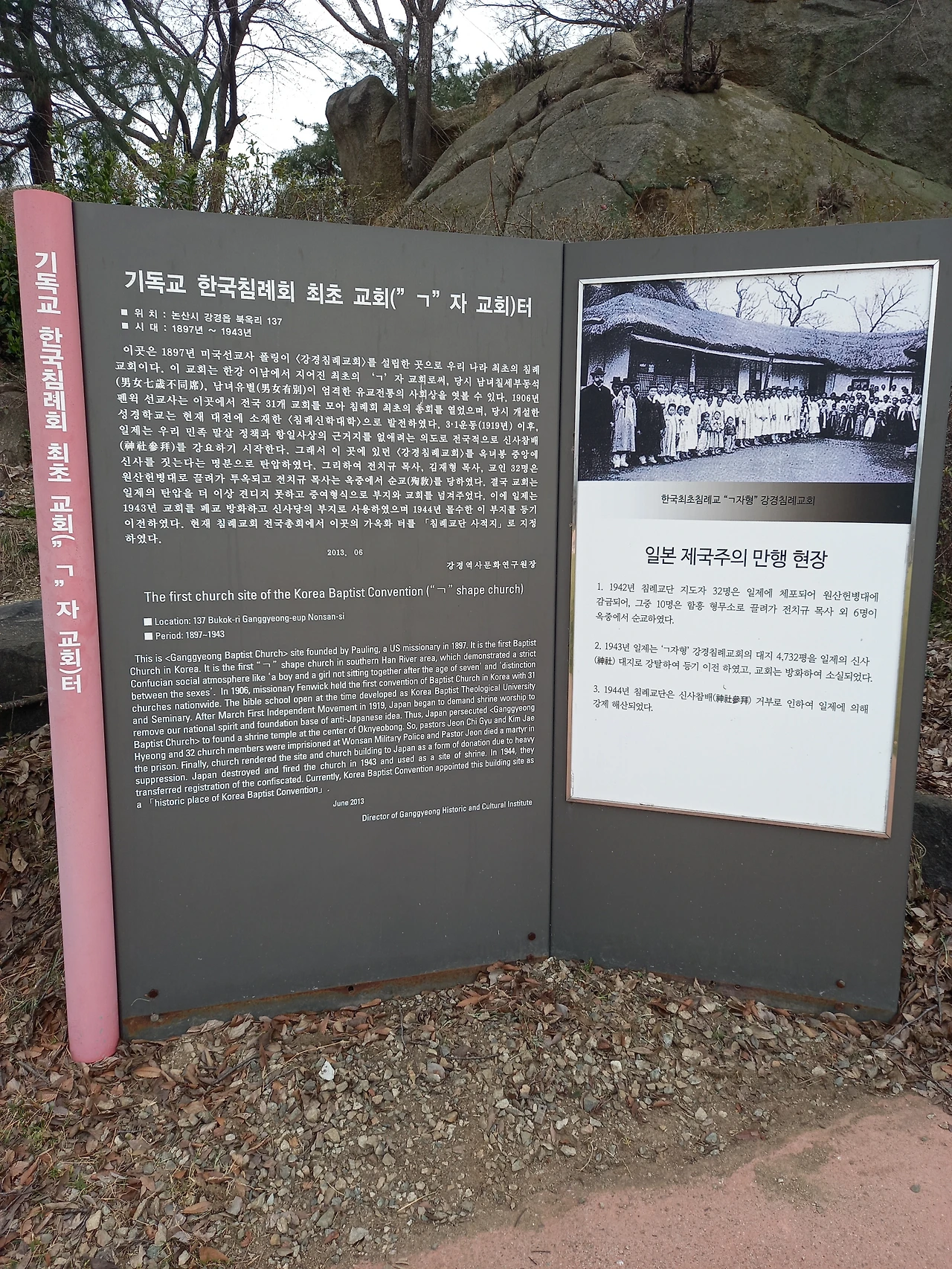 일출과 일몰 명소로, 옥녀봉에서 해가 뜨고 지는 모습을 볼 때 얼마나 황홀할지 상상이 가더라. 이 작은 공원 일대에 의외로 볼거리도 많았다. 논산출신이자 강경읍에서 학창 시절을 보냈던 소설가 박범신의 소설 [소금]에 나오는 소금집과 기독교 한국침례회 최초 교회이자, 'ㄱ'자 교회 터 자리에 당시 초가집 모습의 교회를 재현한 집도 있었다.