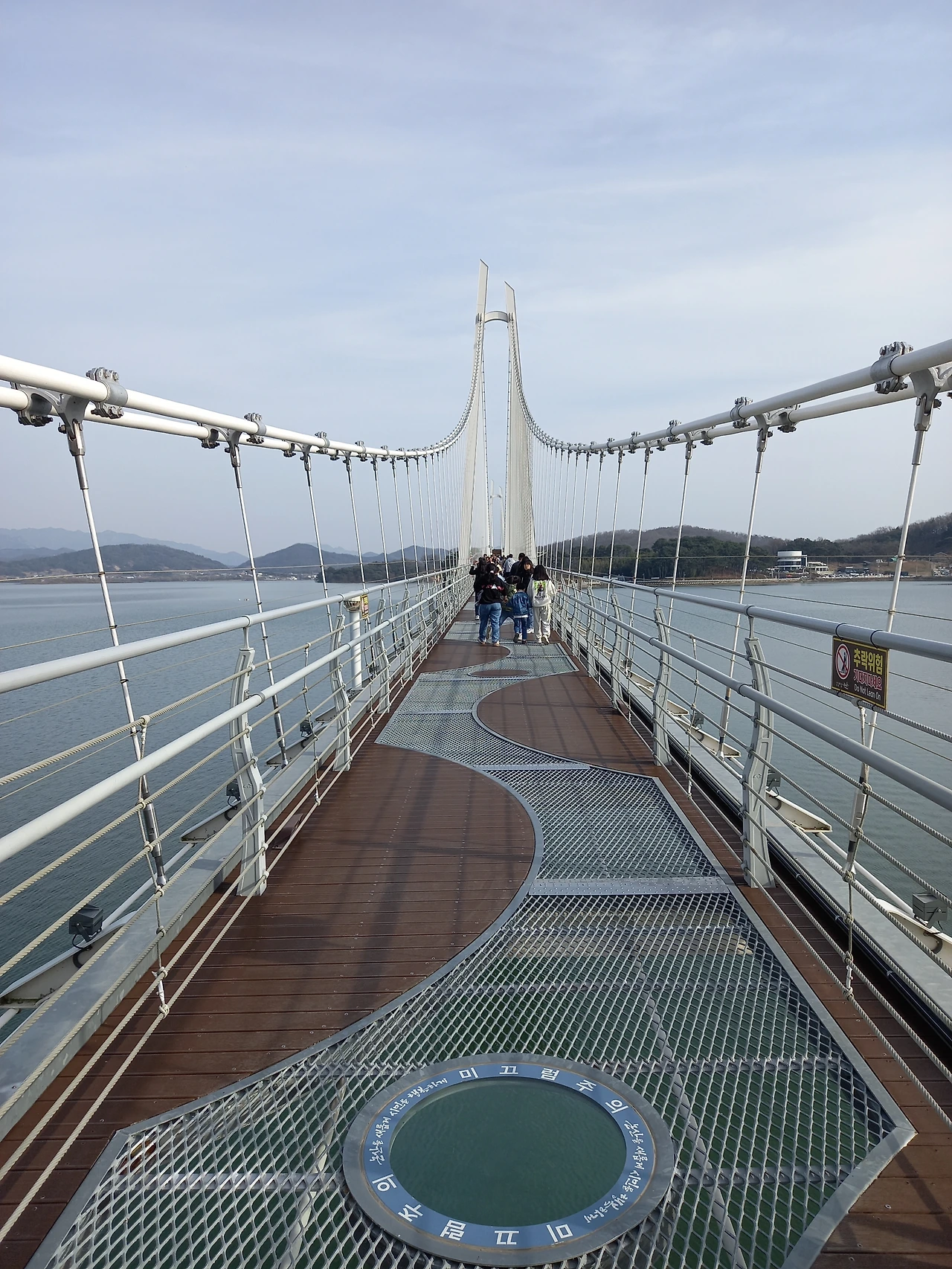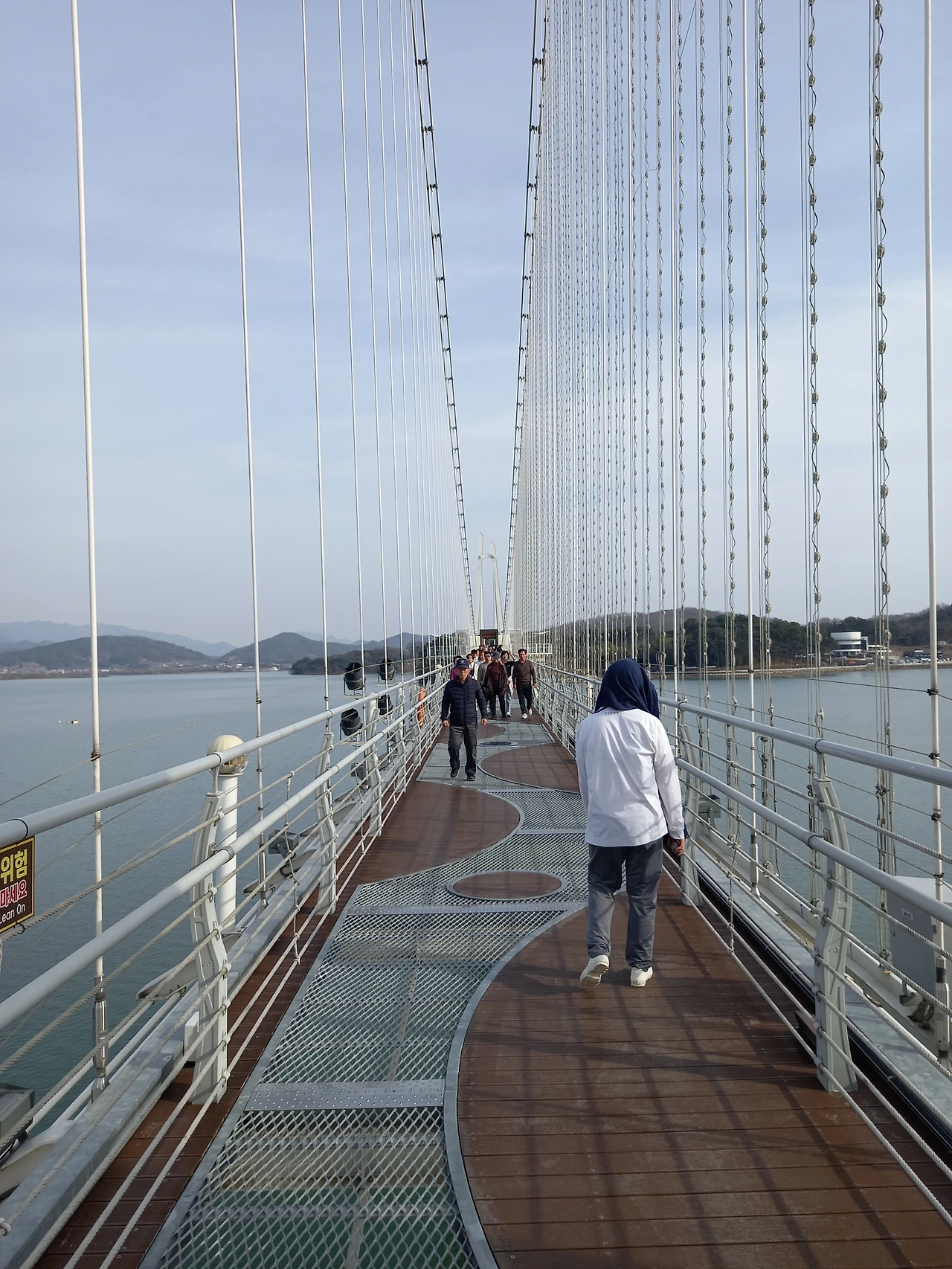 자리에서 엉덩이를 뜨기가 싫었지만, 메인 스폿인 출렁다리를 건너기 위해 일어났다. 요즘 많은 지역에 출렁다리가 설치돼 있지만 물 위의 출렁다리는 처음 경험했다. 바로 전 날 산에 있는 출렁다리를 건널 때랑은 또 다른 느낌으로, 훨씬 더 안정감이 들었다.