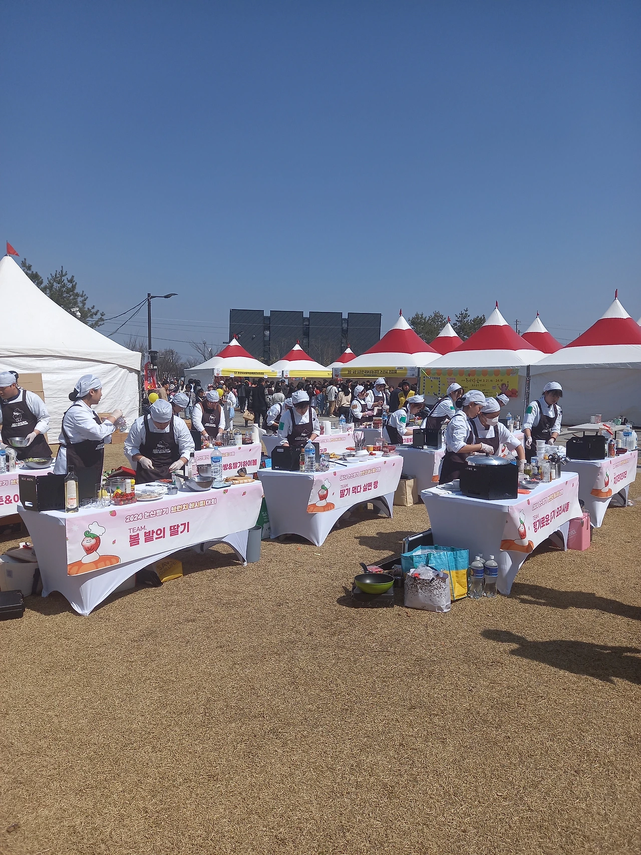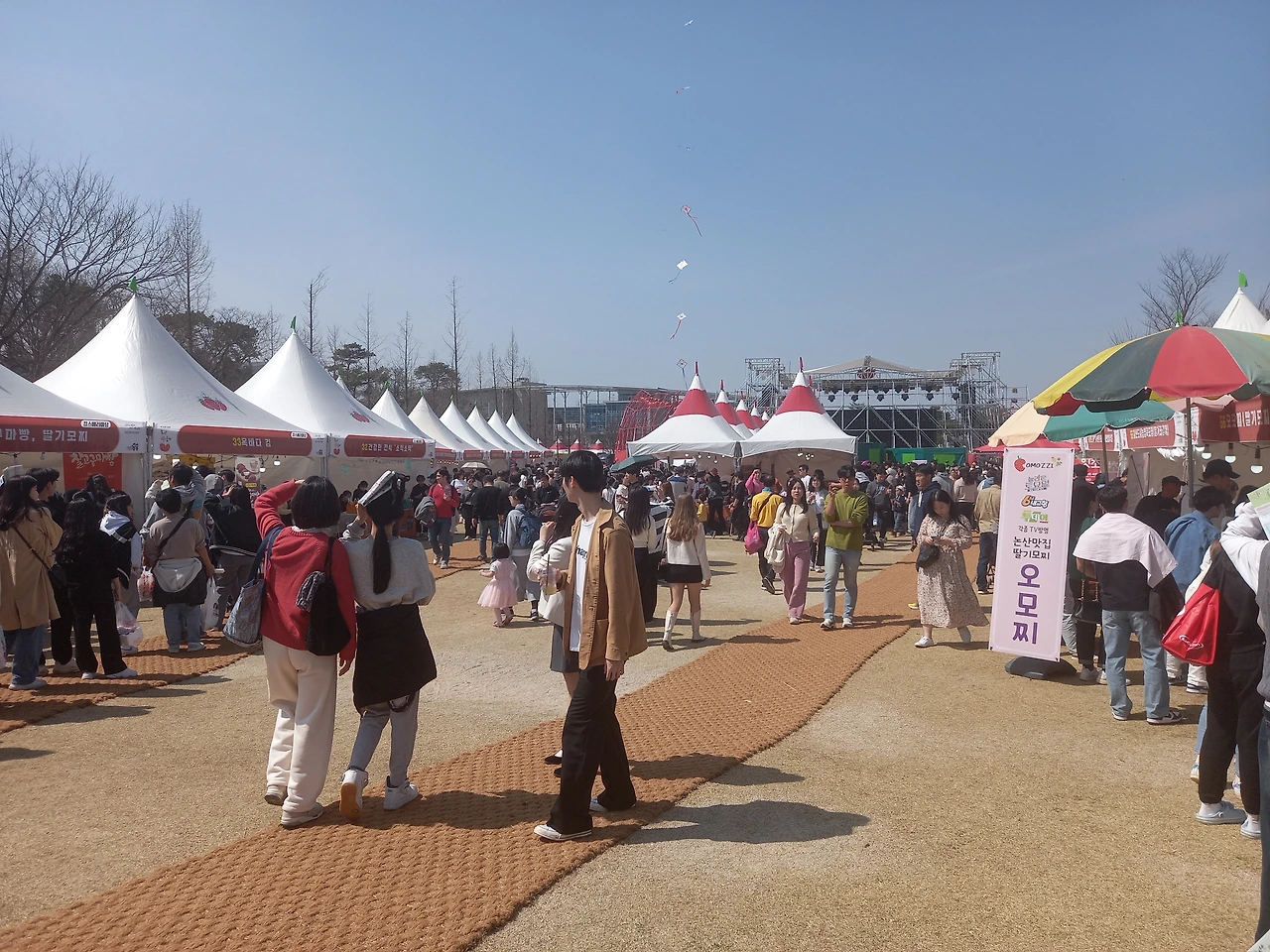 딸기 축제 현장에는 사람이 많아도 너무 많았다. 대전의 명물 대전 성심당 부스에는 대기줄이 길었는데 그보다 더 대기가 길었던 것은 "딸기 오모찌" 였다. 사는 데 한 시간 반이 넘게 걸렸다. 원래 같았음 당연히 줄 서기를 포기했을 텐데 일정이 여유 있었고, 사람들이 가장 찾는 것이라 먹어보고 싶었다. 그 정도 기다릴 만한 가치는 없었지만 맛있긴 했다. 모두들 각종 딸기 및 딸기가 첨가된 제품을 양손 가득 사더라. 논산 딸기는 거의 모두가 샀던 듯.